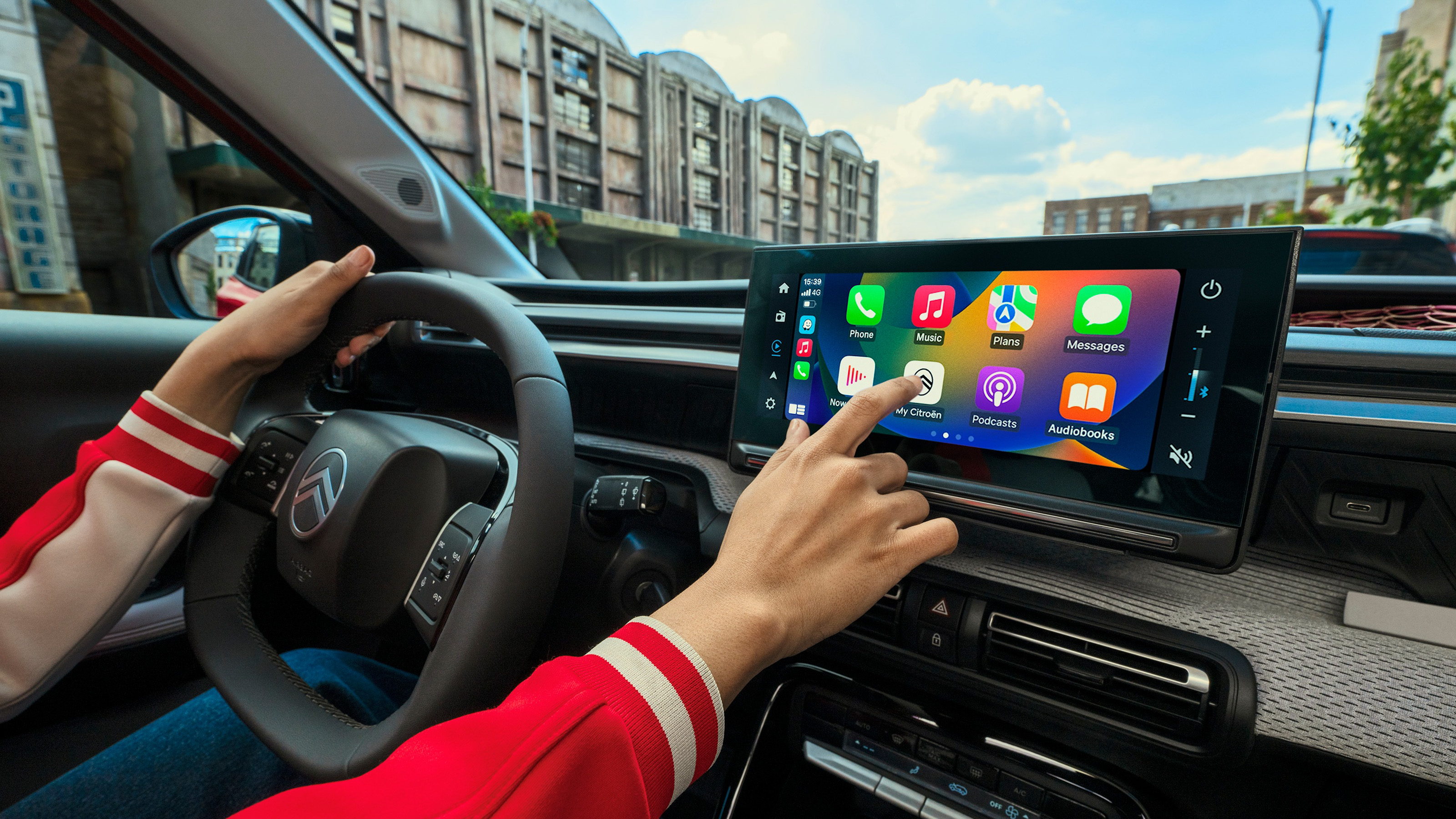 Los ë-C3 Max sí que tienen una pantalla táctil de 10,25 pulgadas para el sistema multimedia, con navegador incorporado y compatible con Android Auto y Apple CarPlay. Además, con este nivel de acabado también dispones de una superficie de carga inalámbrica para el teléfono móvil.