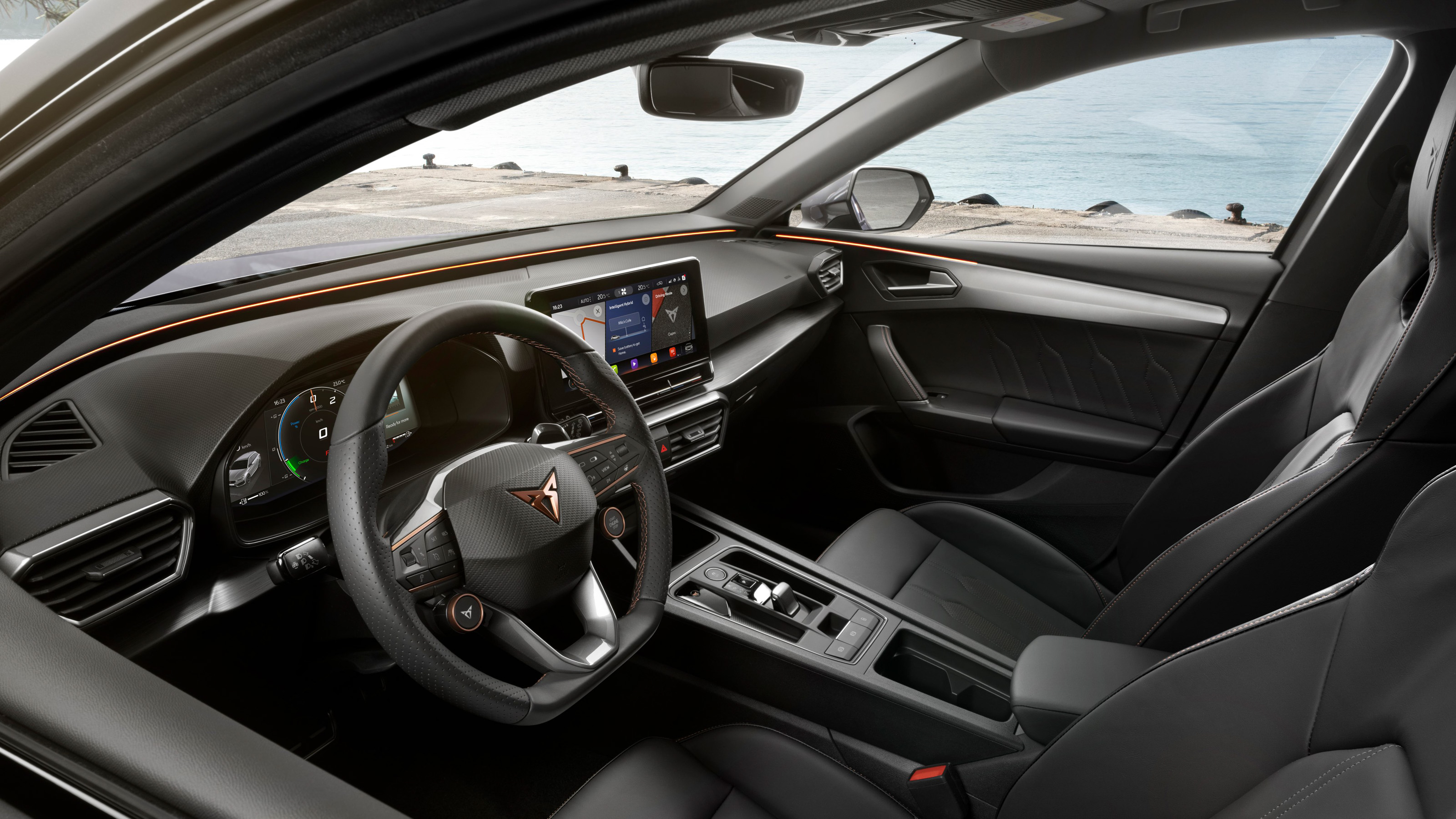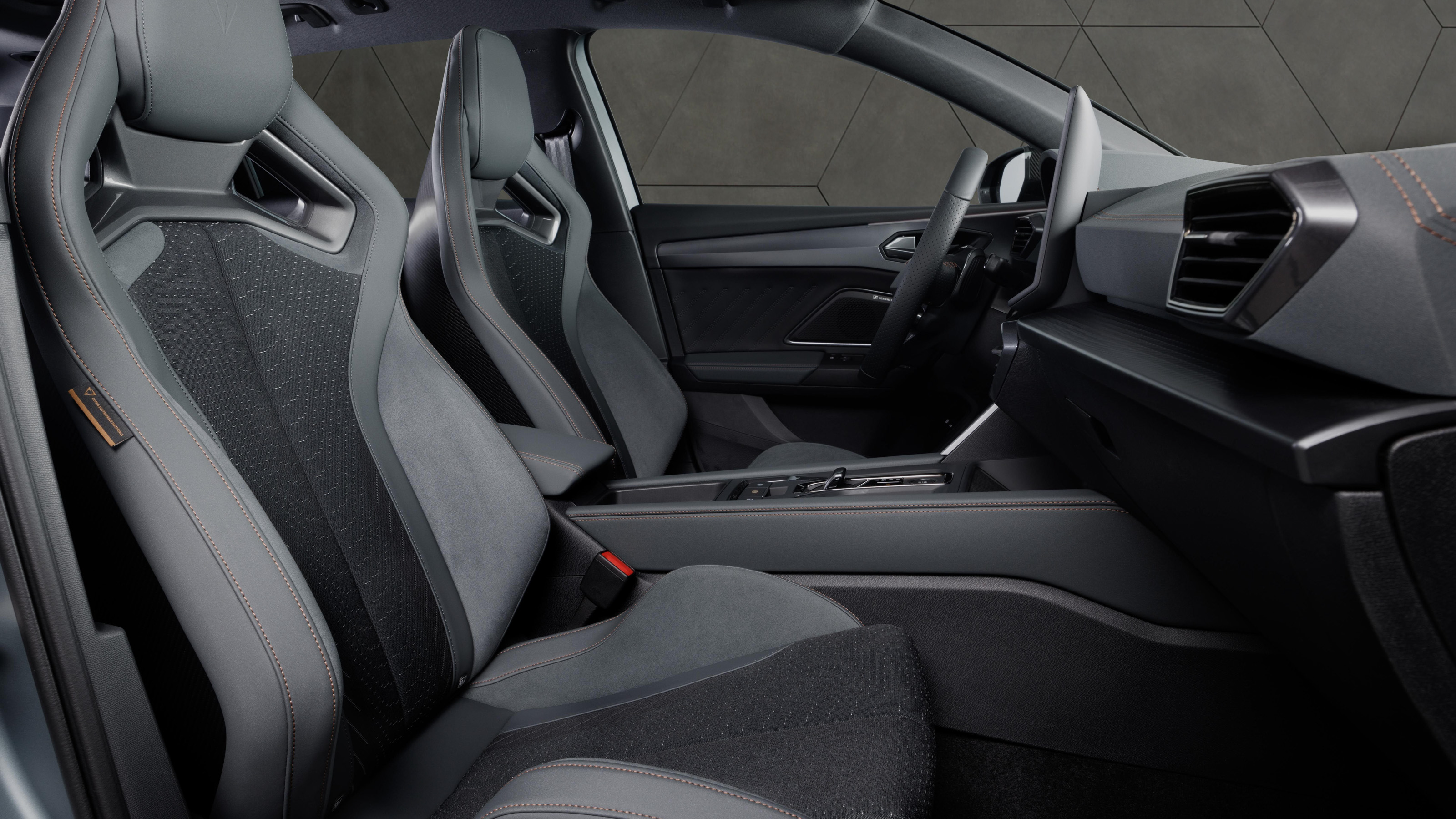 Lo que es innegable es que quizás sea uno de los coches más polivalentes del mercado, ya que dispones de un deportivo muy bueno en un formato práctico y confortable para toda la familia. Y es que el habitáculo de este Cupra es prácticamente idéntico al de su hermano de Seat, con un maletero de hasta 620 litros (las versiones híbridas se quedan en 470) y mucho espacio para cuatro adultos. Los asientos son específicos, de tipo baquet. También hay otros detallitos que desmarcan a este modelo del Seat, como algunas molduras decorativas y que la instrumentación tiene un modo de visualización específico.