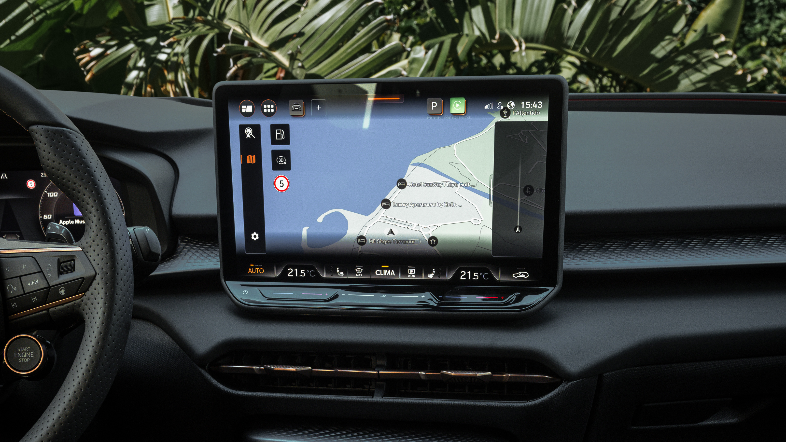 La instrumentación digital y la gran pantalla central ofrecen una visualización clara e intuitiva, con Apple CarPlay y Android Auto inalámbricos de serie.