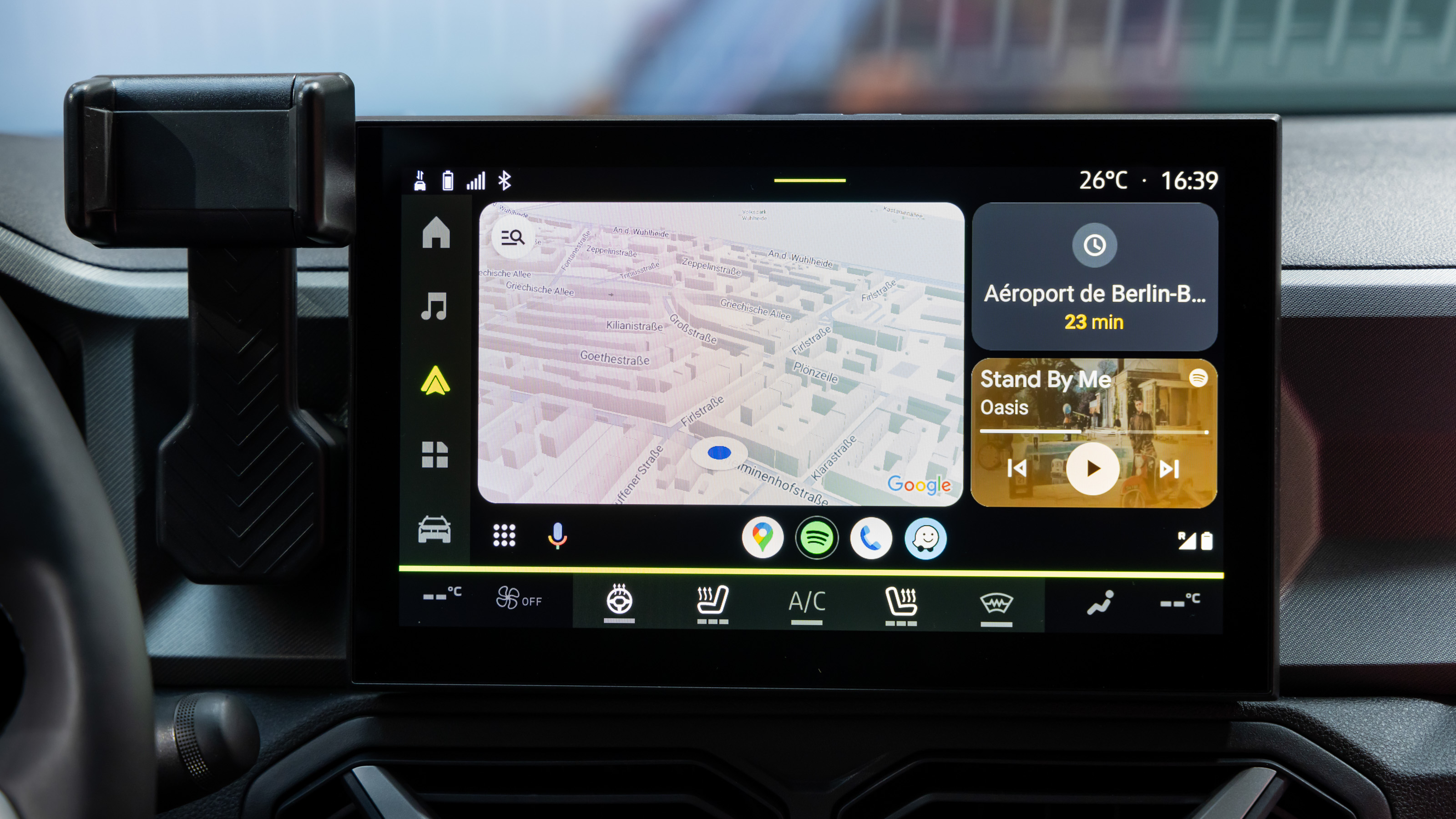 Dacia nos habla de dos niveles de acabado: Journey y Extreme. Independientemente de cuál escojamos, la configuración de monitores es la misma. La pantalla tiene una diagonal 10,1 pulgadas e integra el sistema multimedia Media Nav Live, con un funcionamiento rápido y fluido en el que poder proyectar la pantalla de nuestro móvil mediante Apple CarPlay o Android Auto de manera inalámbrica. También ofrece navegación conectada integrando información en tiempo real sobre las condiciones del tráfico y cartografía actualizada durante 8 años. Igualmente está asociado a un sistema de audio Arkamys 3D Sound System de 6 altavoces.