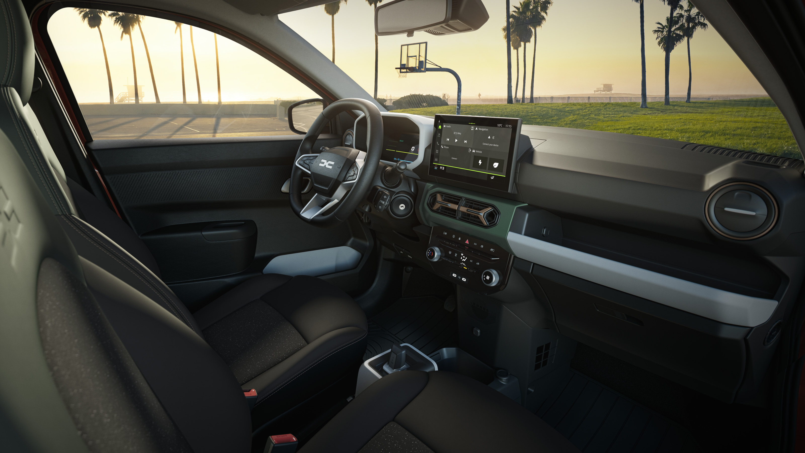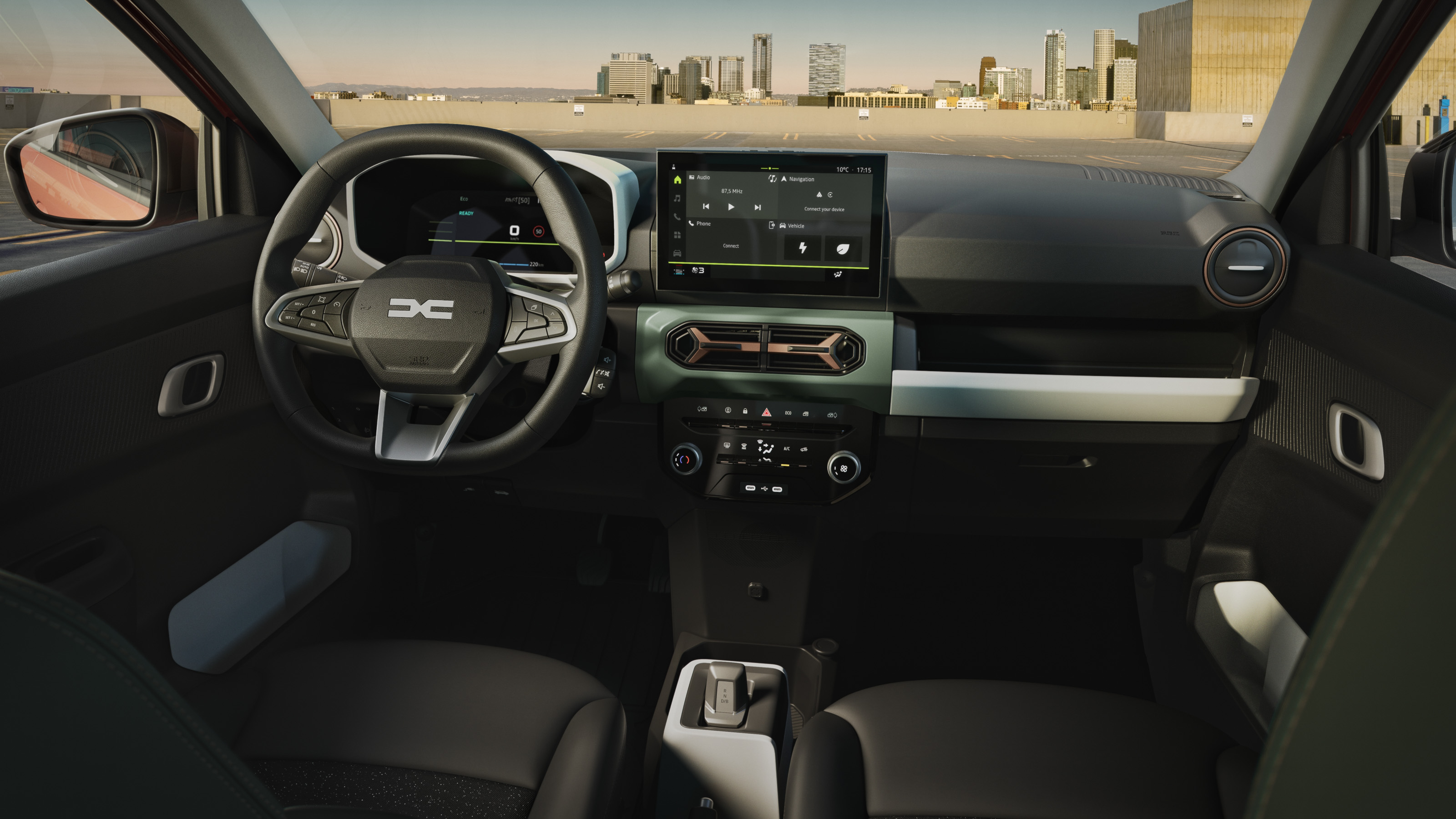 El Spring ahora cuenta con un cuadro de instrumentos digital de 7 pulgadas en todas las versiones, además de una pantalla multimedia central de 10 pulgadas en los acabados superiores. Este sistema es compatible con Apple CarPlay y Android Auto, mejorando la conectividad y facilitando la navegación y el acceso a funciones multimedia.
