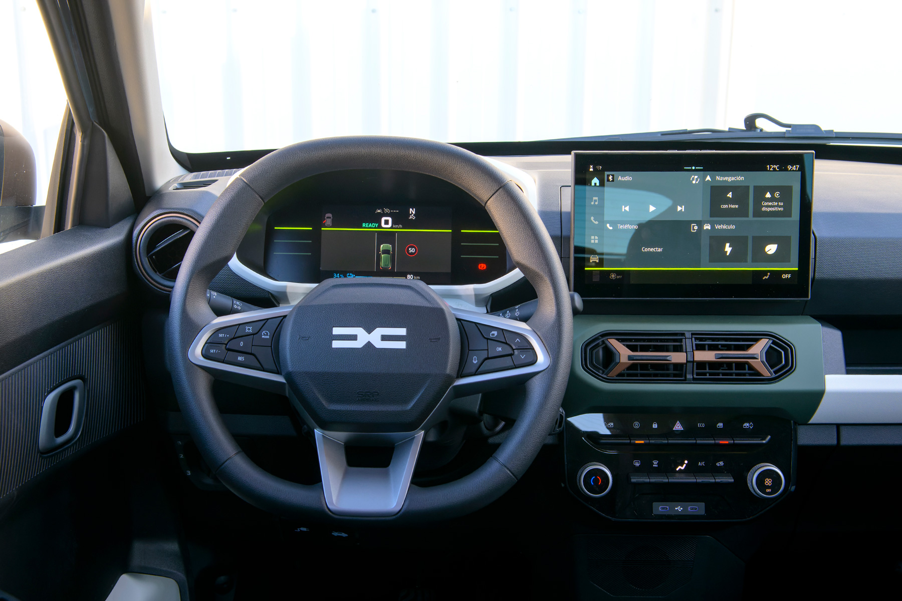 El equipamiento se divide en dos niveles muy definidos. El acabado Expression se asocia al motor de 70 CV e incluye de serie elementos como el cuadro digital de 7 pulgadas, sensores de parking traseros y aire acondicionado manual. Por su parte, el acabado Extreme sube la apuesta con el motor de 100 CV, la pantalla central de 10,1 pulgadas con conectividad inalámbrica y la función V2L (Vehicle to Load), que permite utilizar la batería del coche para alimentar dispositivos eléctricos externos, transformando al pequeño Dacia en una batería gigante para actividades al aire libre o emergencias.
