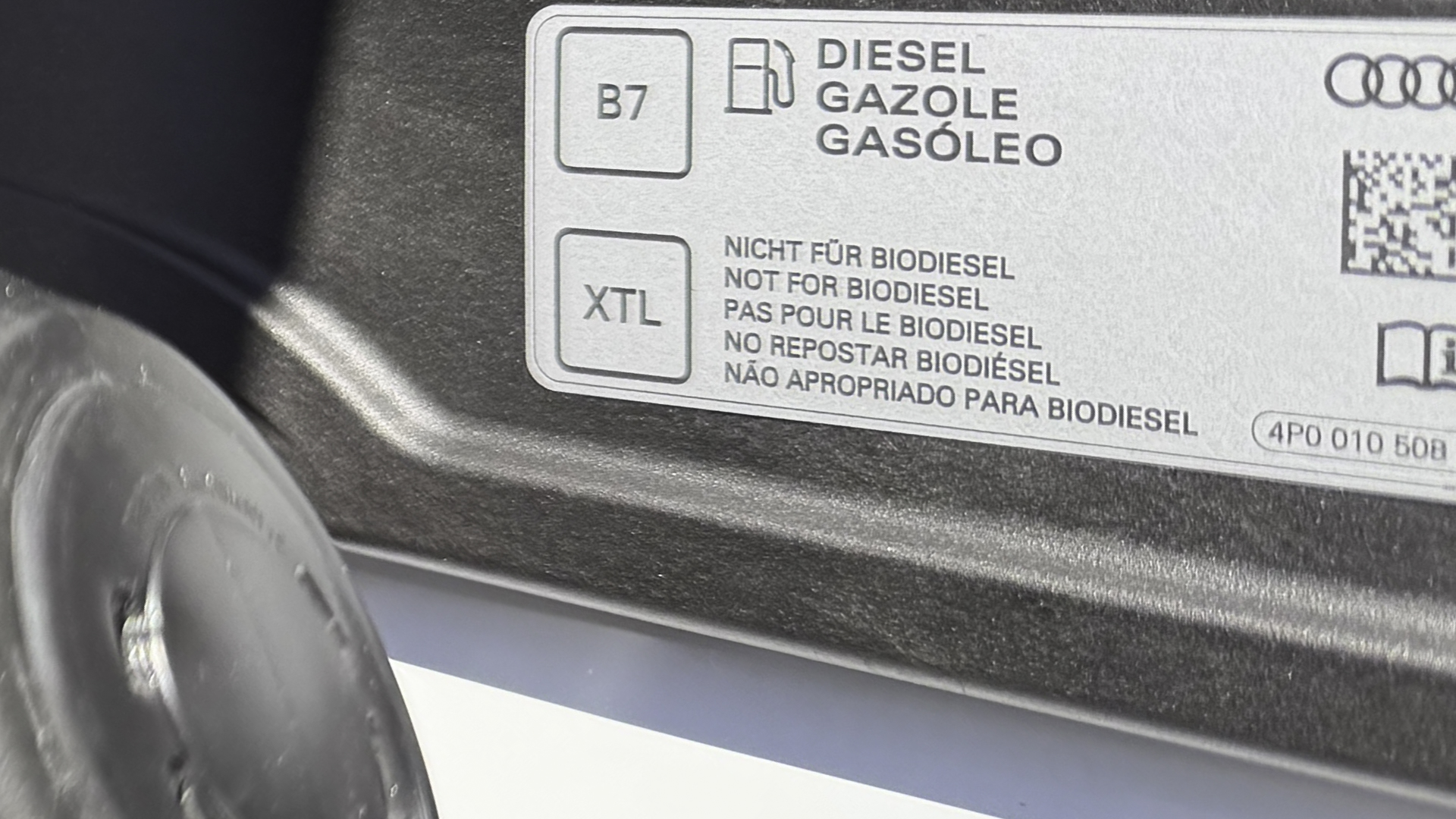 En vehículos anteriores a la implantación de la normativa, esta pegatina puede no estar. En ese caso debes consultar el manual o buscar la información específica del modelo. Aquí puedes ver la etiqueta de un Audi A6 de 2025 con motor 2.0 TDI microhíbrido.