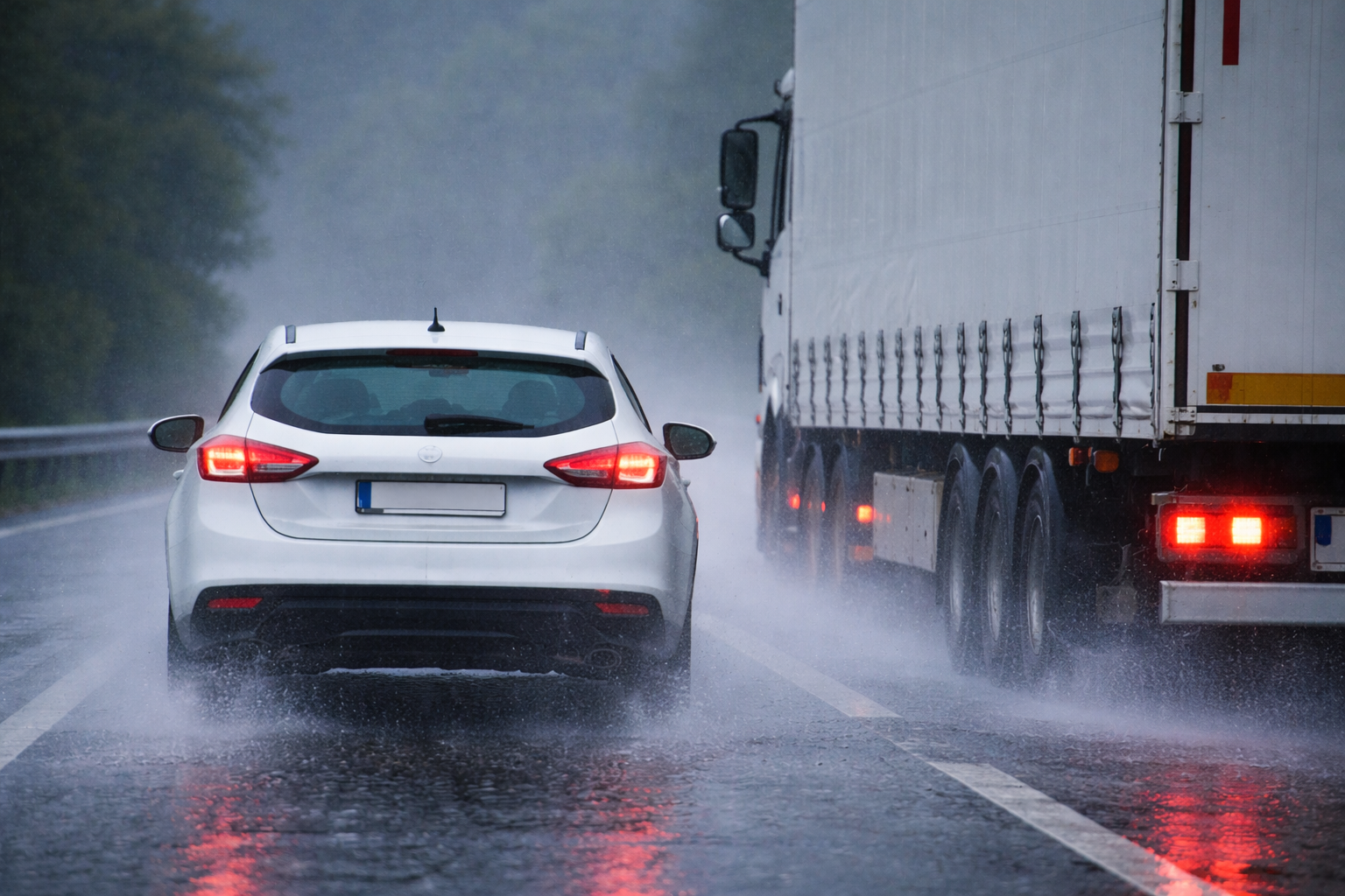 Con temporal, la mejor maniobra es no salir. Si no queda otra: suavidad, distancia y cero improvisación. Con el agua y el viento, el coche siempre lleva las de perder.