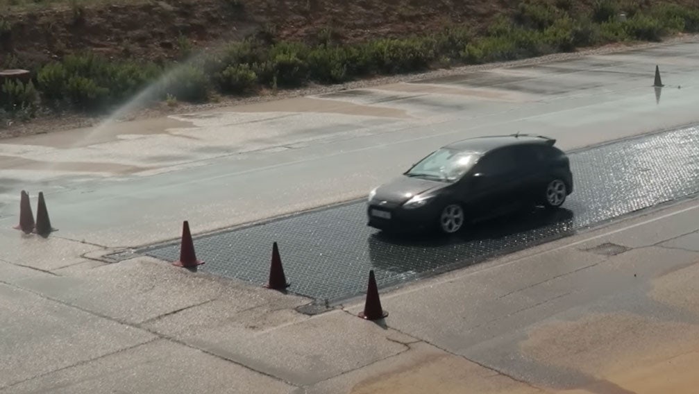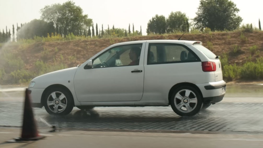 Foto sugerida: Comparativa visual de la distancia de frenado con y sin ABS en una carretera mojada.