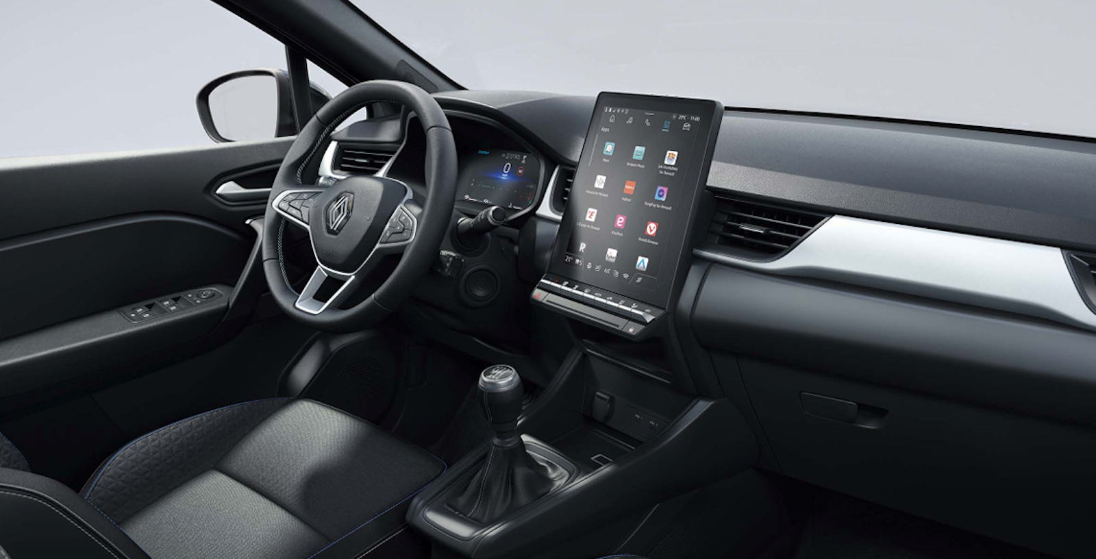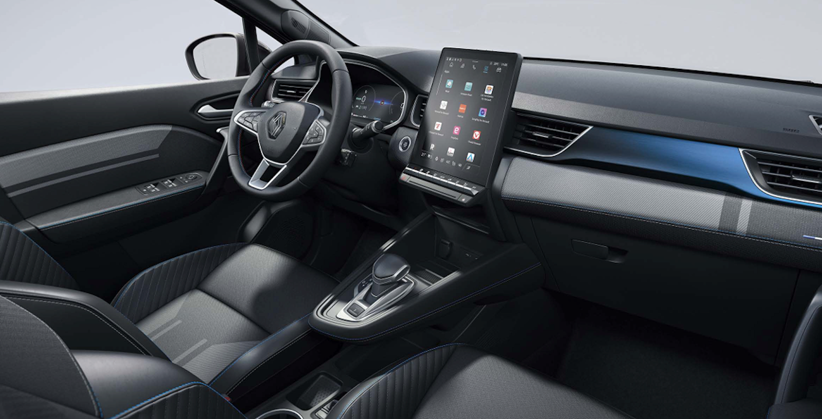 - Asientos delanteros firmados con la insignia Alpine y pespuntes en azul, blanco y rojo