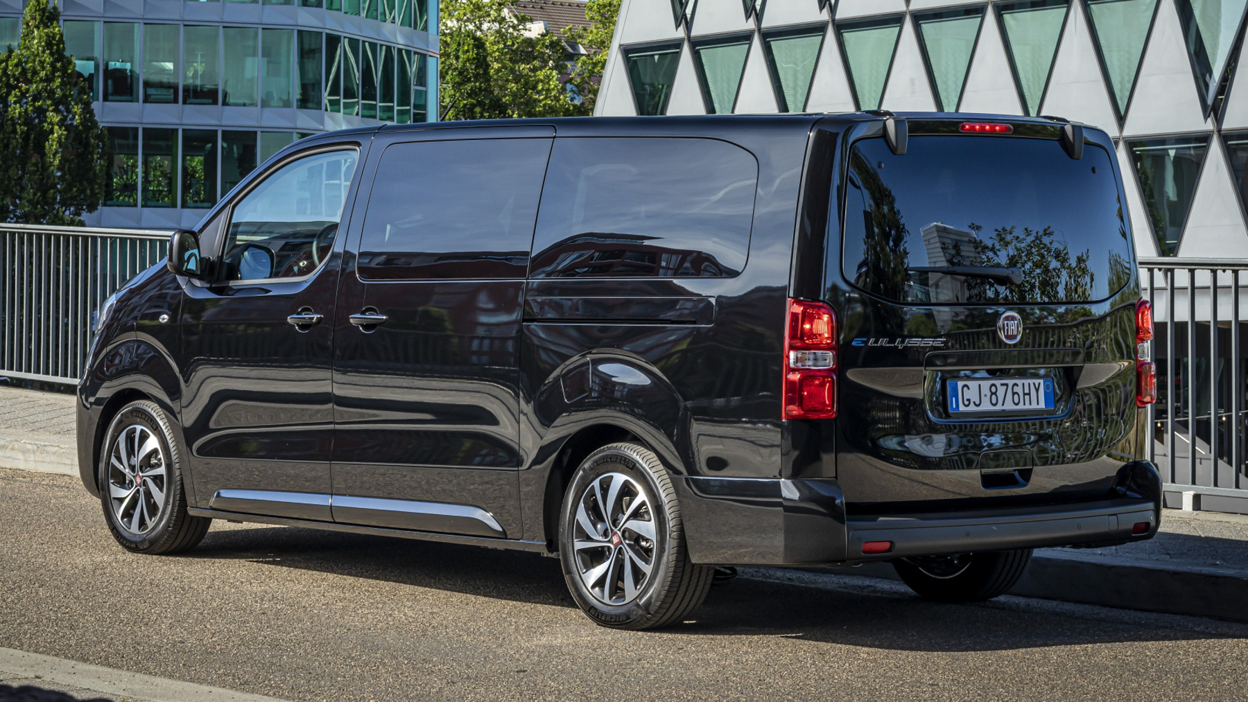 El Fiat E-Ulysse es una furgoneta eléctrica grande para el transporte de pasajeros. Hay dos longitudes de carrocería disponibles, una de 4,95 metros (Talla M) y otra de 5,31 metros (Talla L). En ambos casos, hay dos configuraciones posibles, con siete u ocho plazas. La variante dedicada al uso industrial se denomina e-Scudo.