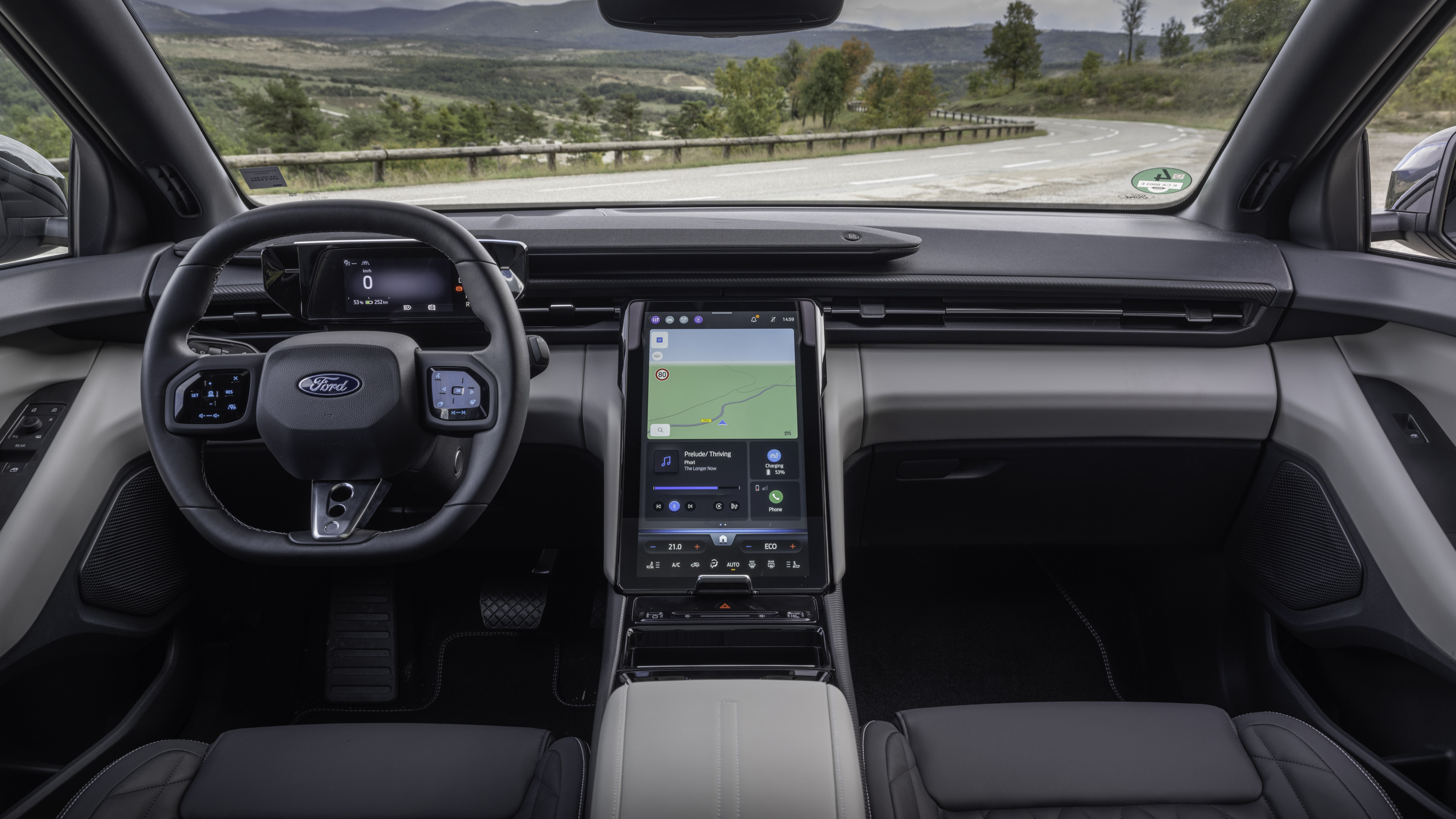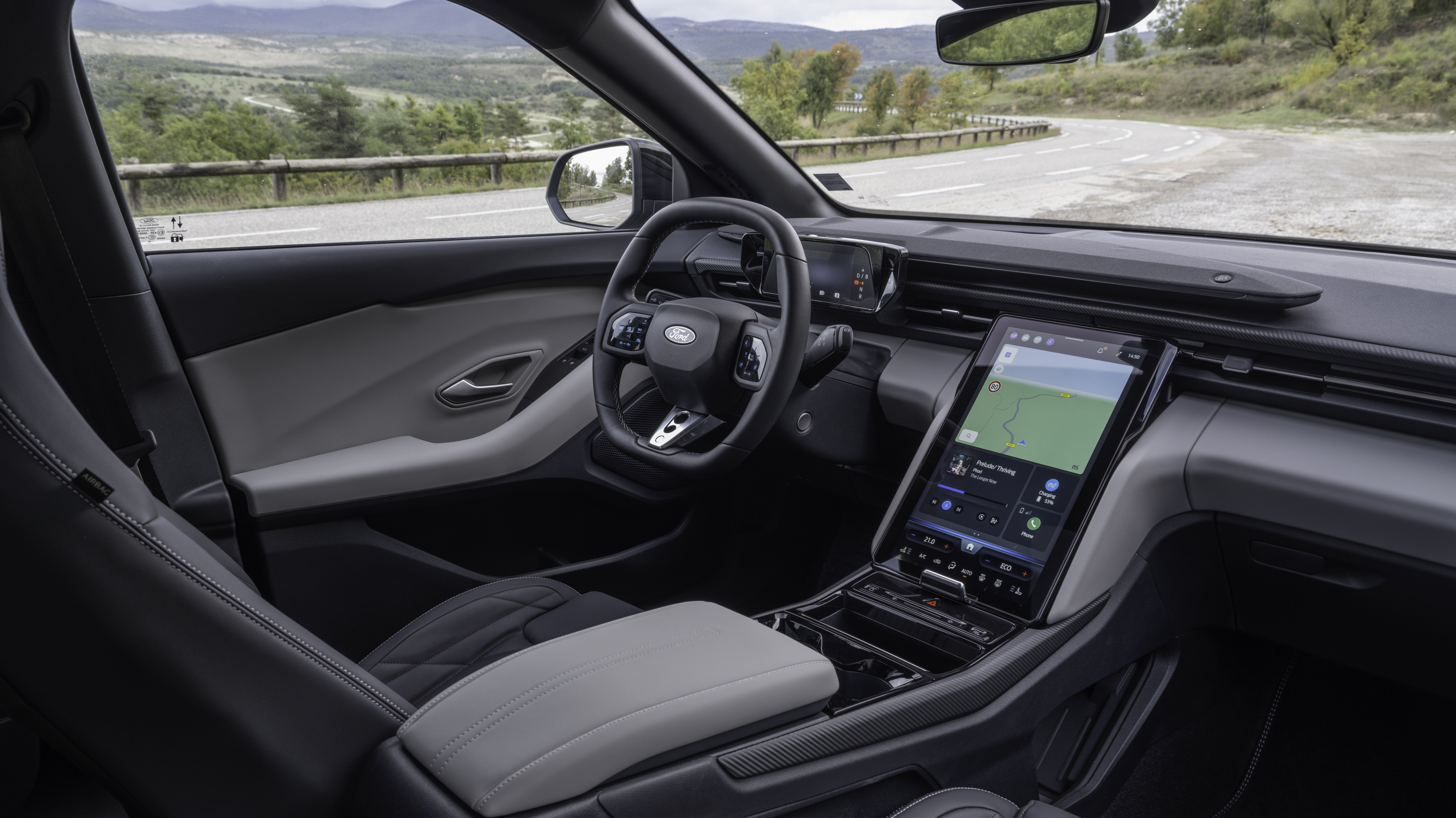 El interior del Ford Capri incluye materiales de buena calidad, con una disposición tecnológica centrada en la pantalla multimedia que Ford denomina SYNC Move, de 14,6 pulgadas. La ergonomía es adecuada, entre otras cosas porque comparte prácticamente todo con el Explorer, y este es un coche muy bien resuelto en el plano práctico. Aunque algunos controles esenciales, como la climatización, están integrados en la pantalla y pueden requerir más atención del conductor.
