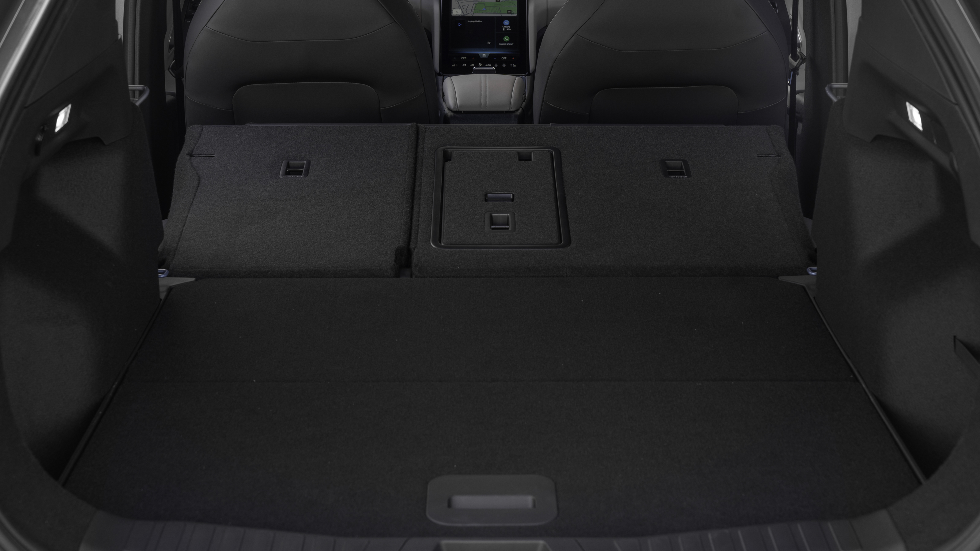 El espacio para pasajeros es generoso en las plazas delanteras y traseras, adecuado para adultos de gran estatura. En la segunda fila, el Capri ofrece un buen nivel de espacio tanto para las piernas como para la cabeza, a pesar de su línea de techo descendente. Los pasajeros de la fila trasera también disponen de salidas de aire y el suelo es completamente plano, lo que permite que el pasajero central tenga más espacio para los pies en comparación con otros SUV eléctricos que mantienen un túnel central elevado. Comparado con modelos como el ID.5, el Capri ofrece un espacio similar, algo lógico al tratarse de un coche prácticamente idéntico en tamaño.
