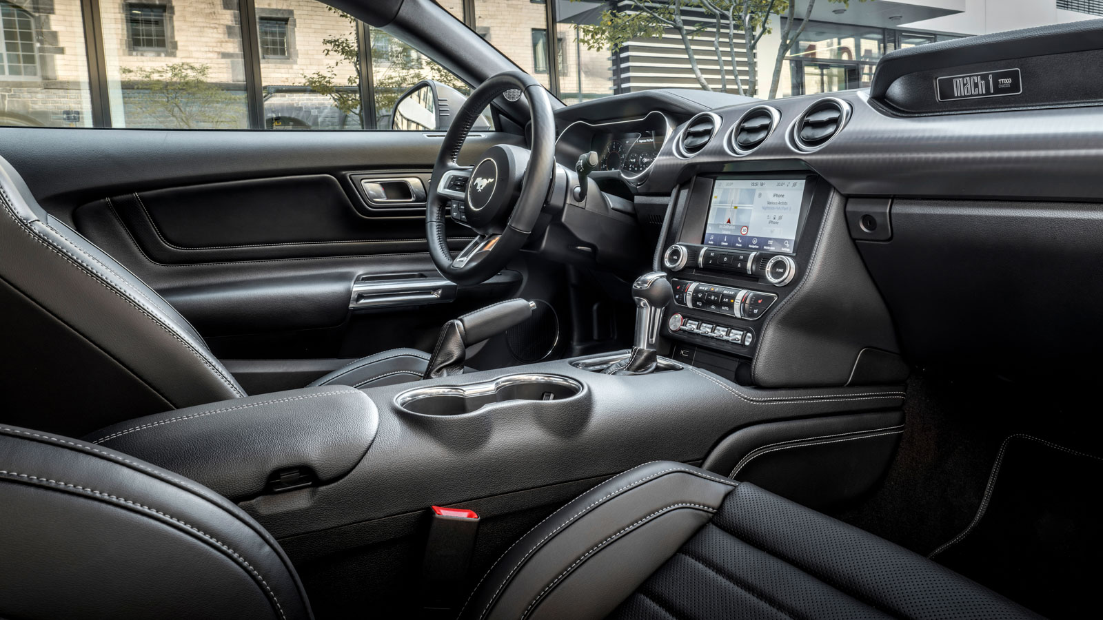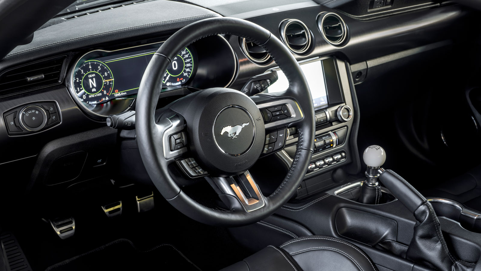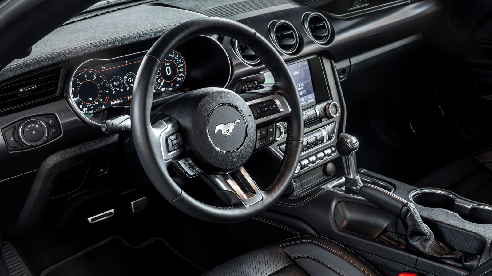 El Ford Mustang equipa de serie un panel LCD de 12 pulgadas que hace de cuadro de instrumentos digital, que muestra distintas configuraciones de los indicadores en función del modo de conducción seleccionado. También tiene una pantalla central táctil de 8 pulgadas para gestionar la climatización y el sistema de comunicaciones y entretenimiento SYNC 3,con conectividad mediante Apple CarPlay y Android Auto y comandos por voz.