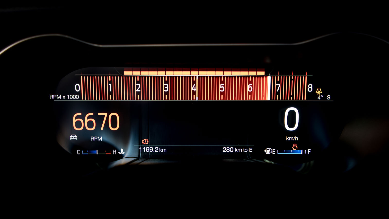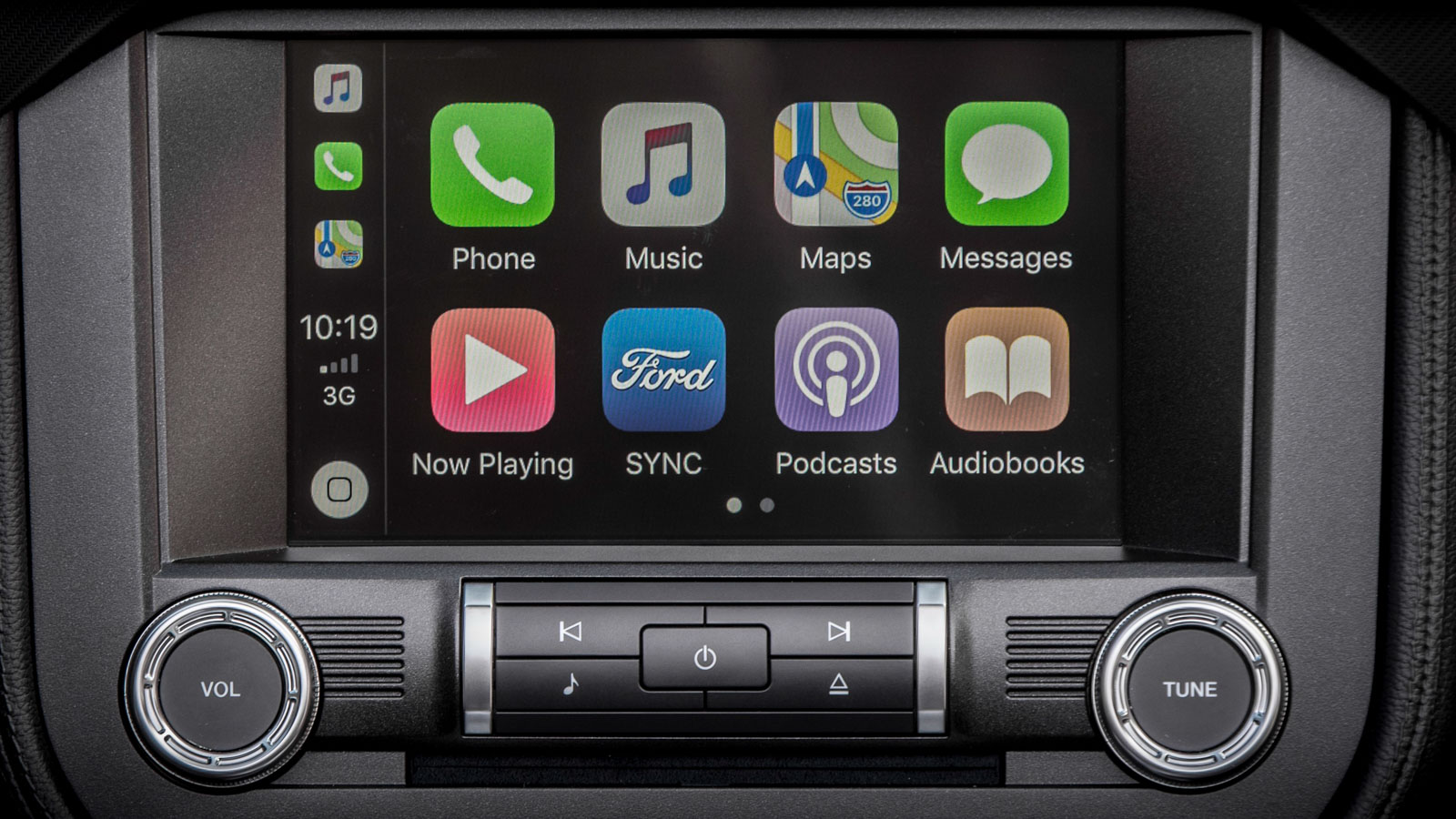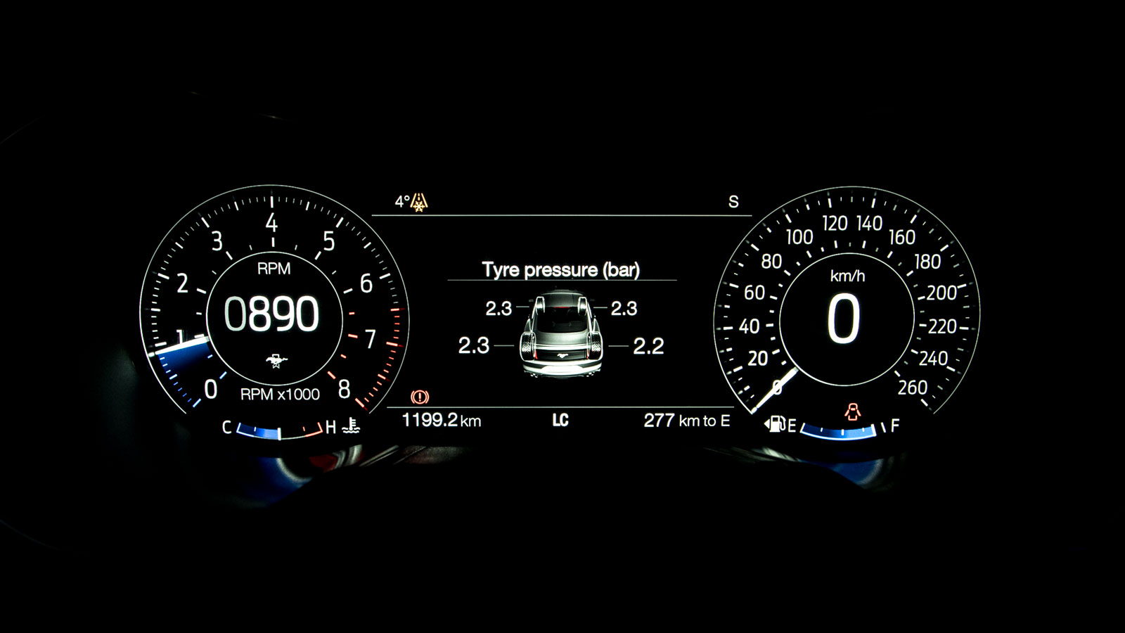 El Ford Mustang equipa de serie un panel LCD de 12 pulgadas que hace de cuadro de instrumentos digital, que muestra distintas configuraciones de los indicadores en función del modo de conducción seleccionado. También tiene una pantalla central táctil de 8 pulgadas para gestionar la climatización y el sistema de comunicaciones y entretenimiento SYNC 3,con conectividad mediante Apple CarPlay y Android Auto y comandos por voz.