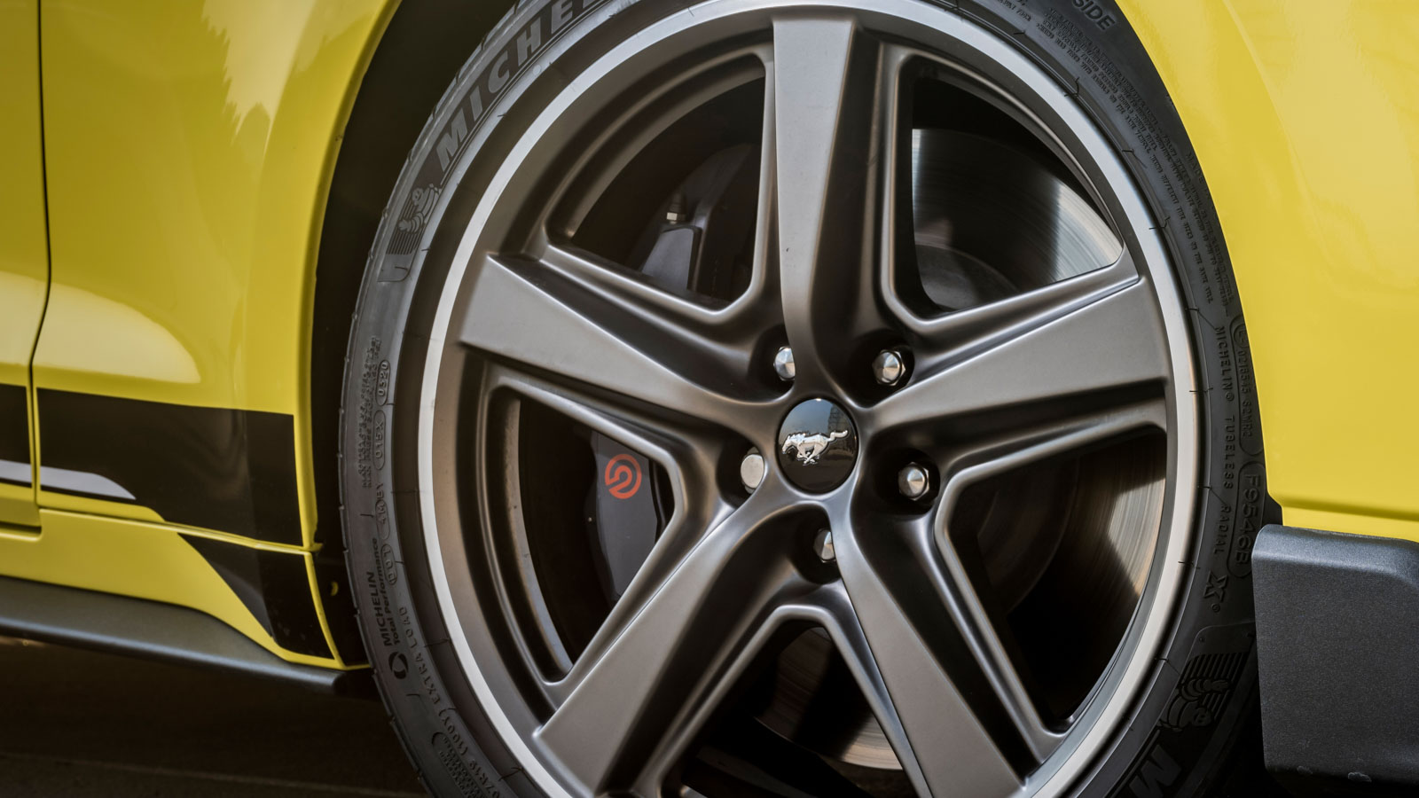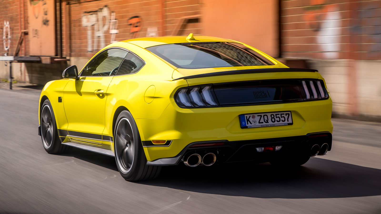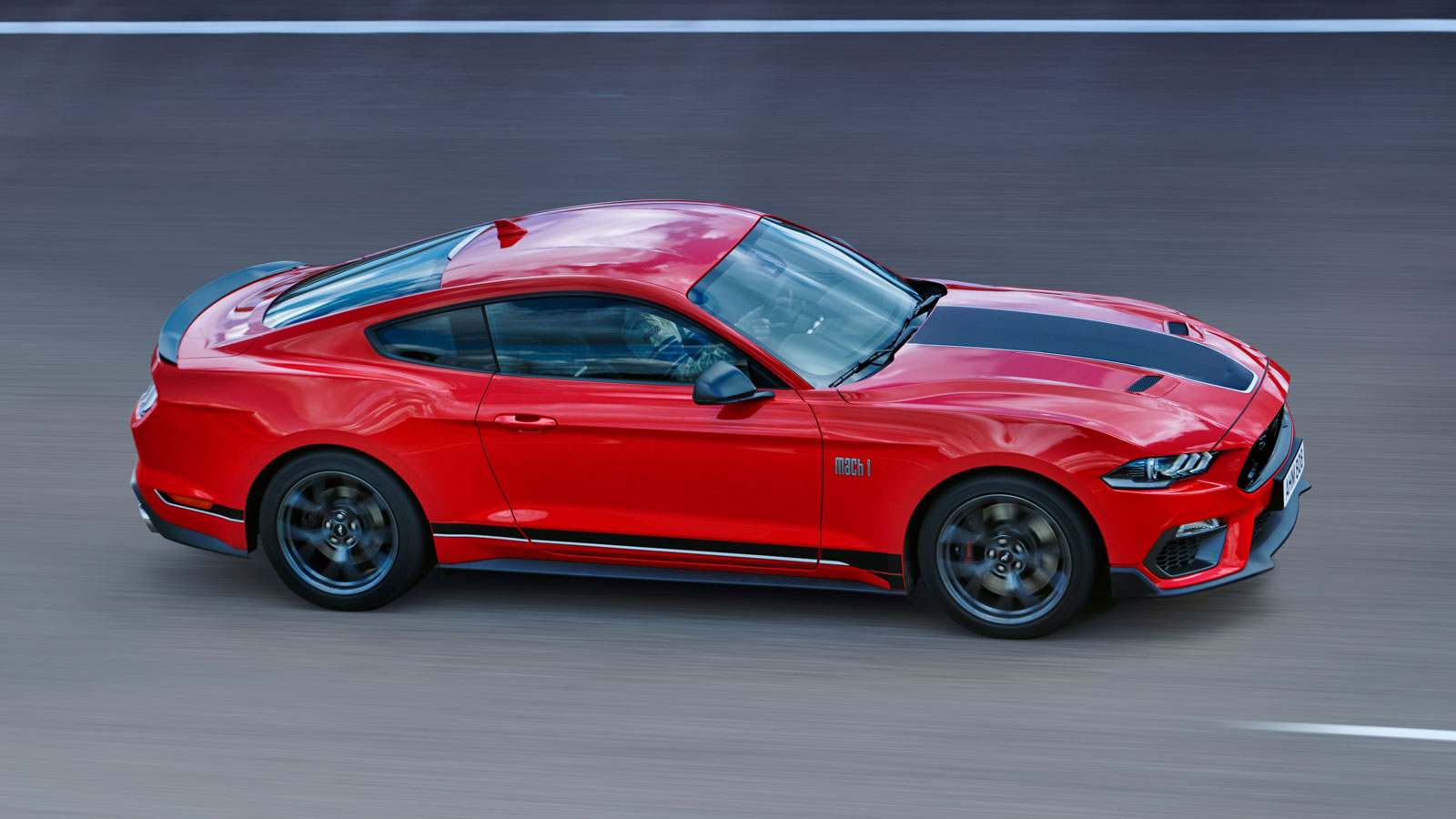 El Ford Mustang GT con cambio automático declara una aceleración de 0 a 100 km/h de 4,3 segundos (4,6 si es manual), por lo que curiosamente es entre 1 y 2 décimas más rápido que la versión Mach 1. Ambos alcanzan una velocidad máxima limitada electrónicamente de 249 km/h, excepto el Mach 1 con transmisión manual, que llega hasta los 267 km/h.