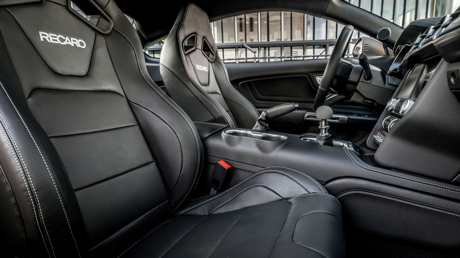 La transmisión es manual de 6 velocidades, con embrague de doble disco y un sistema que en reducciones iguala las revoluciones del motor y el cambio y, opcionalmente, también está disponible una caja de cambios automática de 10 relaciones y convertidor de par. Se incluye otra función que nos permite accionar solo los frenos delanteros, pensada para hacer burnouts (derrapar con las ruedas posteriores mientras el coche está parado) para, por ejemplo, calentar las ruedas para efectuar una salida perfecta.