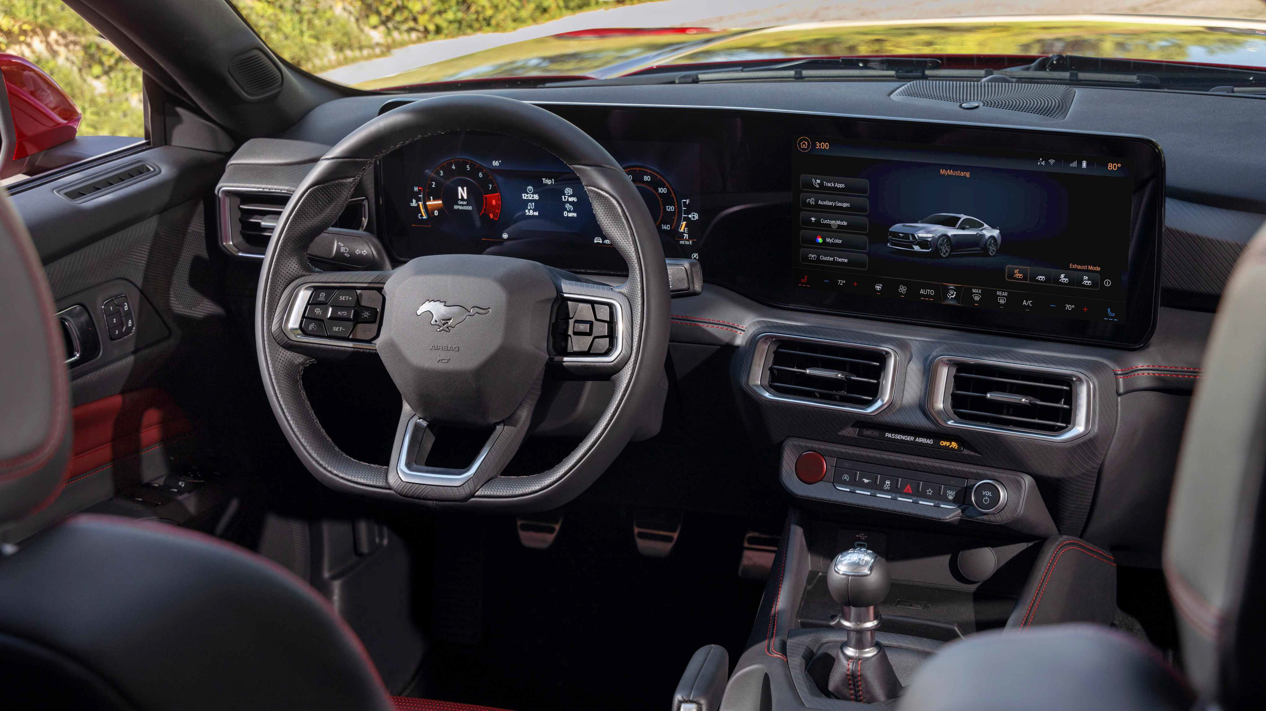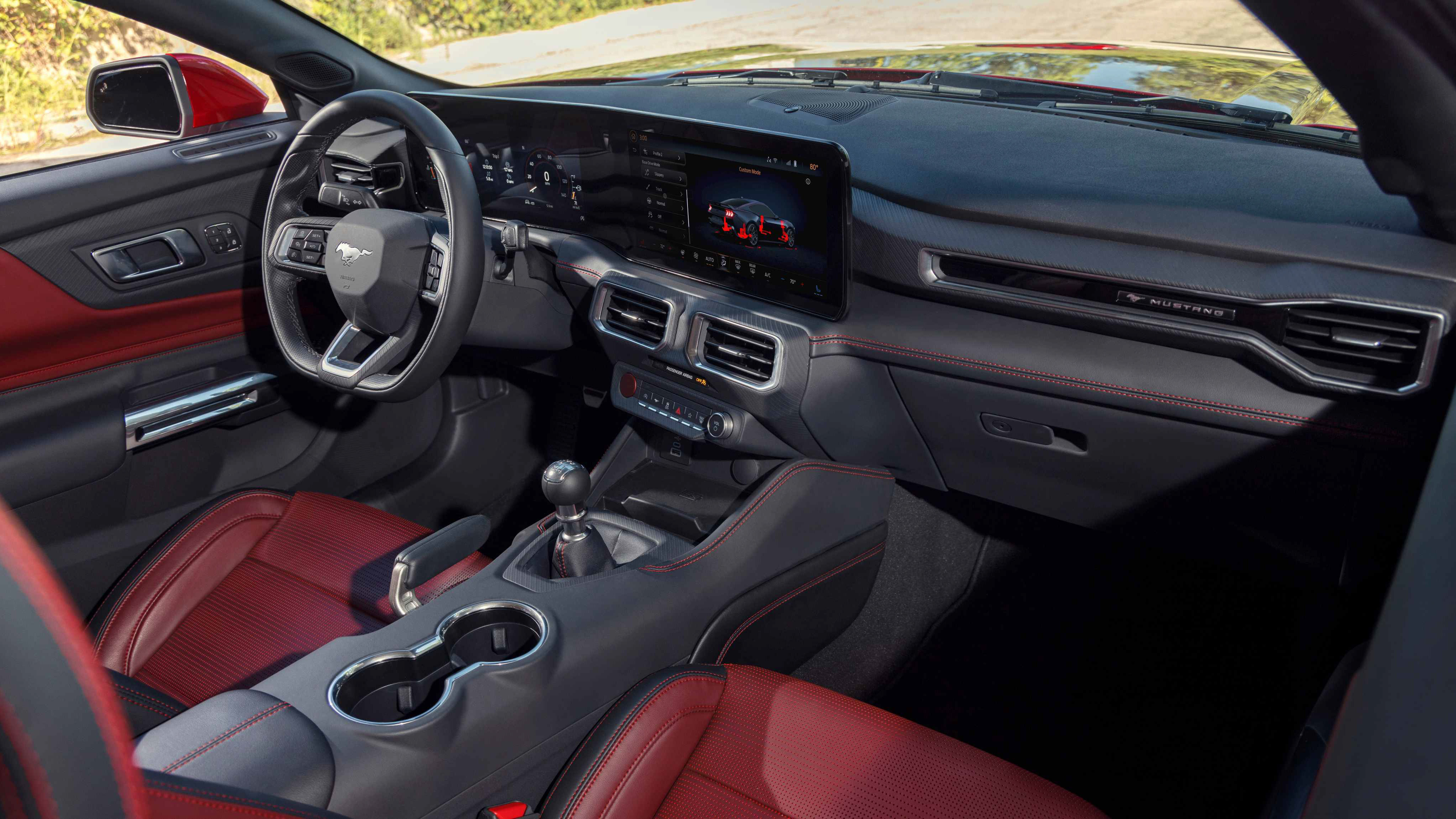 La esencia tradicional del Mustang sigue presente gracias a una configuración mecánica casi inalterada con tracción trasera y motores potentes de gasolina. Va a estar disponible con un motor V8 atmosférico de 5,0 litros y ‘más de 480 caballos’ (Mustang GT), y con un cuatro cilindros EcoBoost de 2,3 litros y potencia aún no definida (Mustang Ecoboost). Estéticamente hay ligeras diferencias entre las dos versiones, ya que la primera tiene cuatro salidas de escape y la segunda dos, y las parrillas son ligeramente distintas. El cambio de marchas puede ser, en ambos casos, manual de seis velocidades o automático de diez.