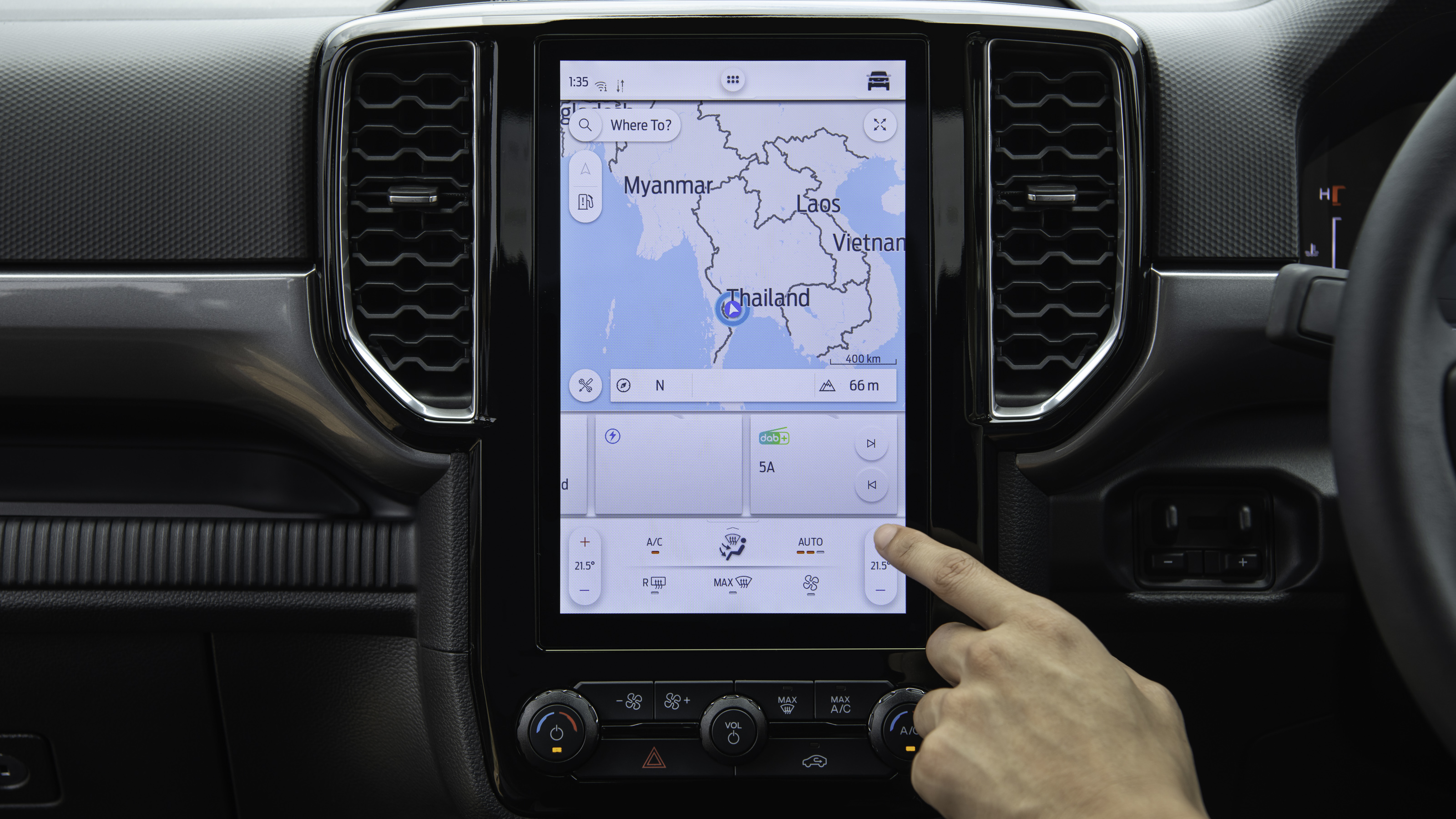 El Ranger lleva el sistema multimedia SYNC 4 de última generación asociado a una pantalla de 10,1 o 12 pulgadas, en función del nivel de equipamiento. La pantalla más grande va colocada en vertical y le da al salpicadero un aspecto muy moderno. El sistema SYNC 4 es compatible con Android Auto y Apple CarPlay, y nos gusta en general por lo sencillo que resulta de utilizar y lo bien que responde a los toques con los dedos.