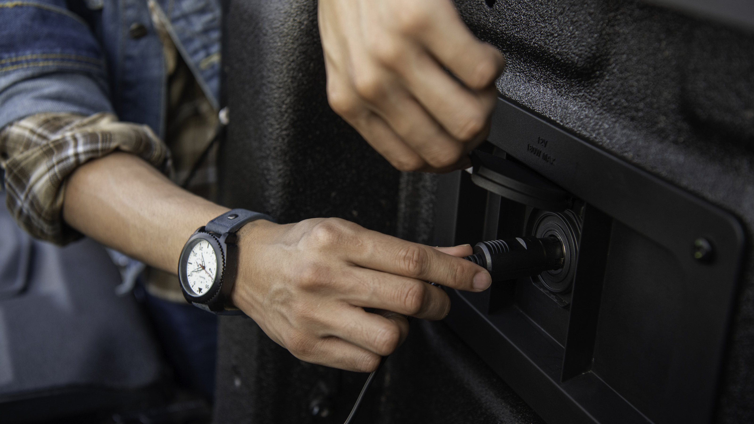 La zona de carga no solo mejora en tamaño: ahora el plástico de recubrimiento es mejor, y tiene un sistema de hendiduras para colocar separadores de carga. También hay varios raíles y anclajes para sujetar la carga convenientemente. En los laterales hay puntos de luz y tomas de corriente de hasta 400 W de potencia. Esto último es opcional, ya que precisa un inversor de corriente; si vas a darle mucha utilidad, puedes instalar una segunda batería para no quedarte sin energía, ya que hay hueco bajo el capó.