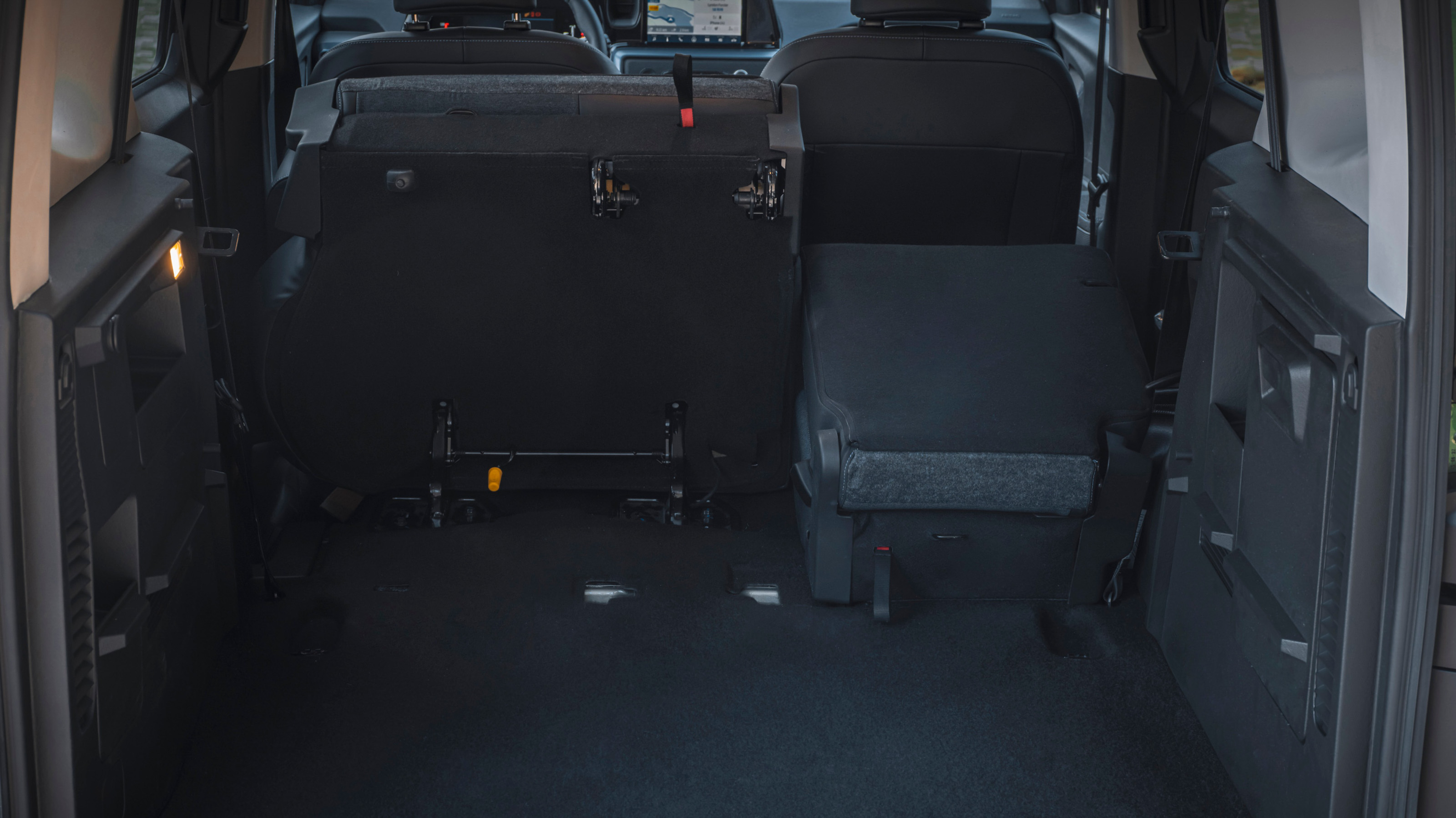 El maletero es muy alto y ancho, con formas totalmente regulares que hacen sencillo cargarlo y descargarlo. Hay un punto de luz en el costado izquierdo y varios ganchos y argollas para sujetar la carga. Los asientos traseros se abaten íntegros en proporción 60:40, pivotando hacia delante y dejando una superficie de carga totalmente plana en la zona trasera. En las fotos adjuntas puedes ver cómo queda.
