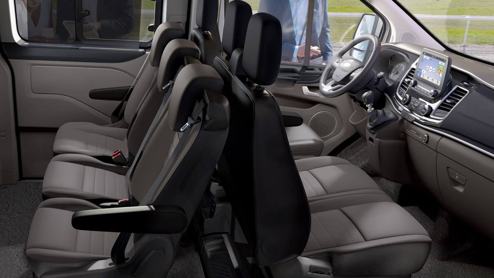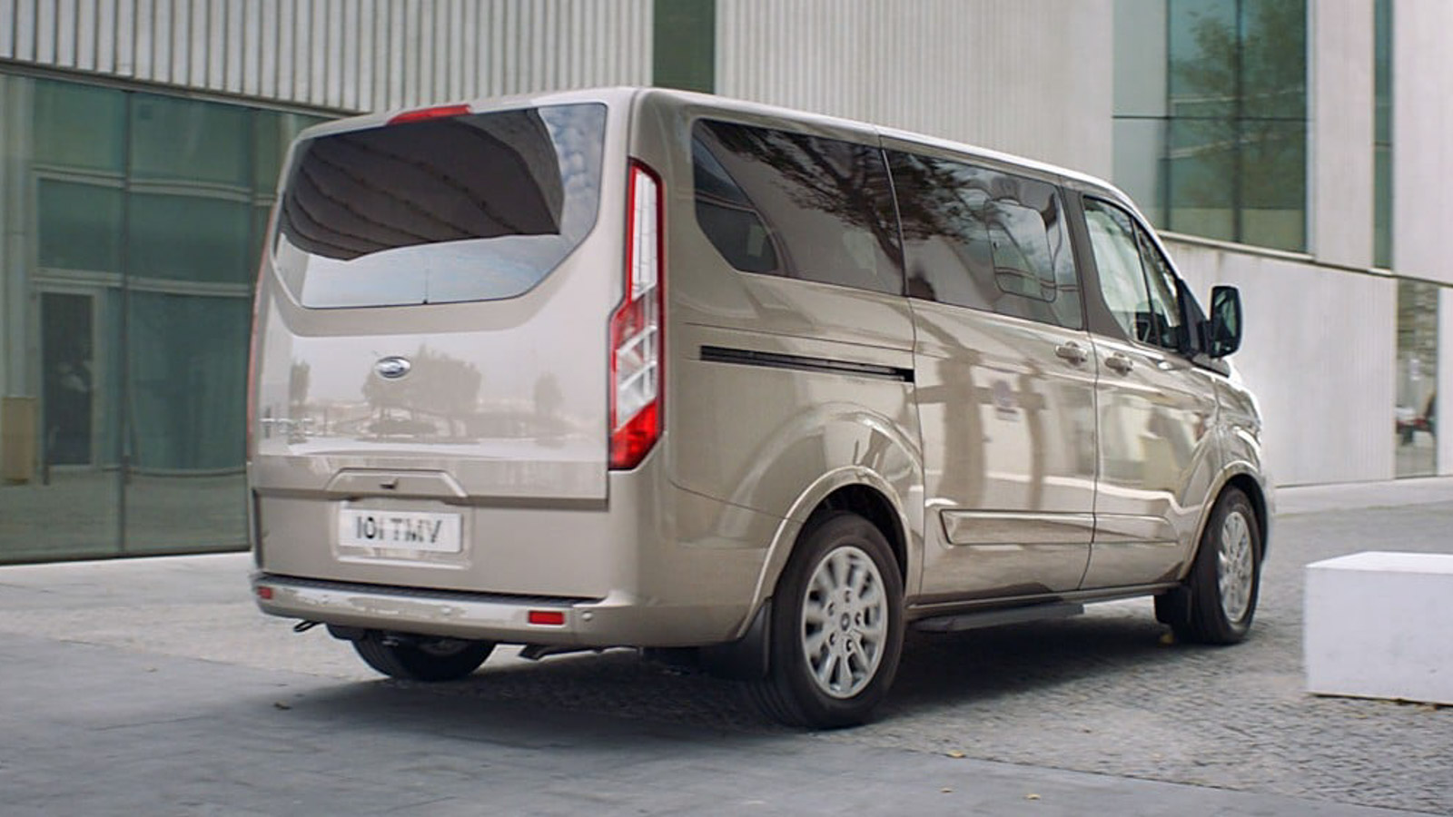 Cuenta con dos longitudes: 4,9 metros, para la versión Tourneo Custom; o 5,3 para la versión Grand Tourneo Custom. En ambos casos su capacidad es para hasta 9 personas. De serie tiene 8 plazas, pero en opción pueden ser 9, montando un asiento doble delante, junto al del conductor. Tiene motores diésel de 130 o 185 CV, con etiqueta “C” o “ECO” e híbrido enchufable gasolina y eléctrico de 126 CV (Tourneo Custom PHEV). Cuenta con 4 acabados, de menos a más equipado: Trend, Sport Titanium y Titanium X.