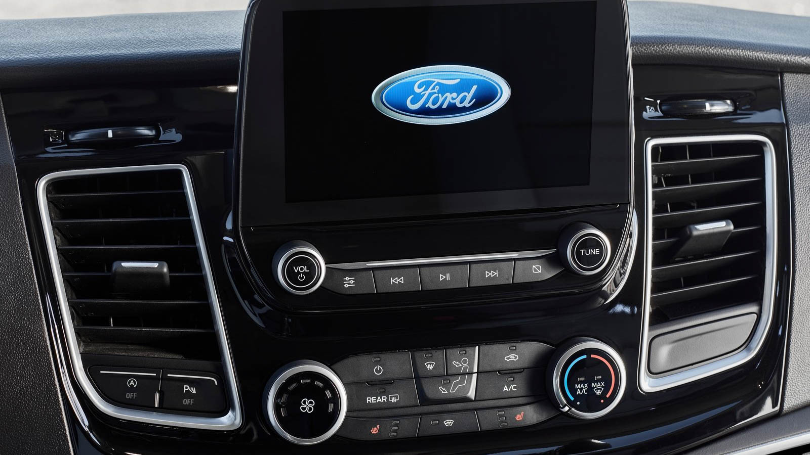 El Ford Tourneo Custom puede montar pantalla táctil de 7,8” y sistema Sync3 con radio digital DAB y CD. Podemos conectarlo a Internet a través del móvil y su Wifi nos permite conectar hasta 10 dispositivos. Tiene conexión Bluetooth para el móvil con audio Streaming. Con el Ford AppLink conecta aplicaciones de Smartphone.