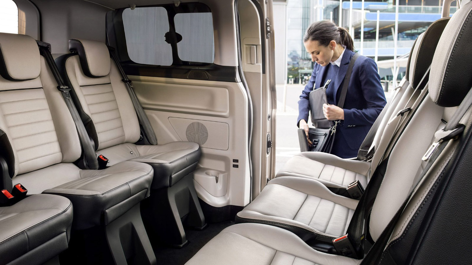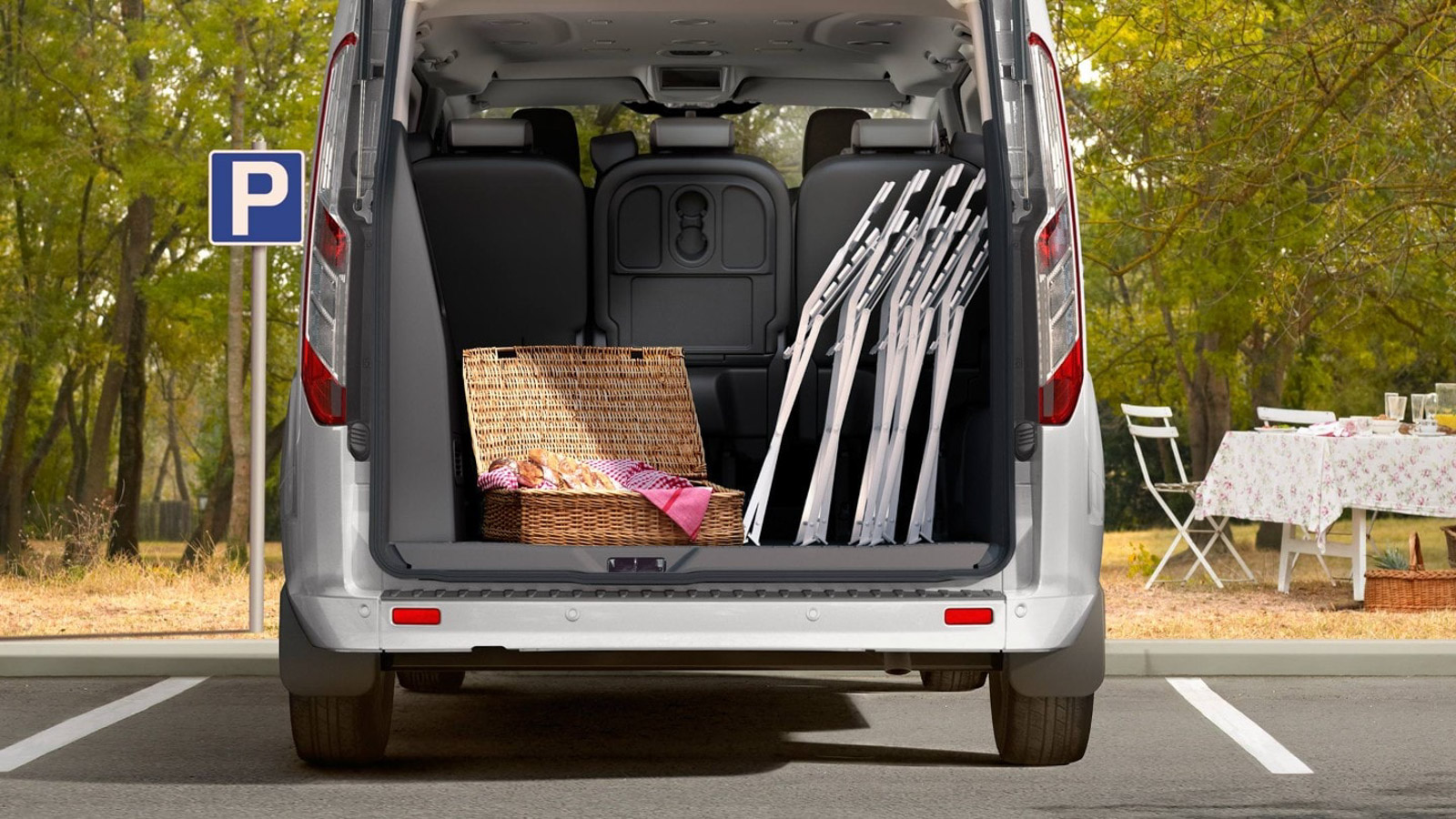 El maletero en el Ford Tourneo Custom ofrece mucha versatilidad. Podemos unir el maletero y el habitáculo y, modulando los asientos, configurar el interior. De serie, los 6 asientos de las filas traseras están enfrentados, como si de una sala de reunión se tratara. Podemos voltear 180 grados los de la fila del medio para que todos miren hacia delante. En la segunda y tercera filas, podemos abatir los respaldos y podemos quitar los asientos. Además, las sujeciones de los asientos nos pueden servir para amarrar los objetos que transportamos.