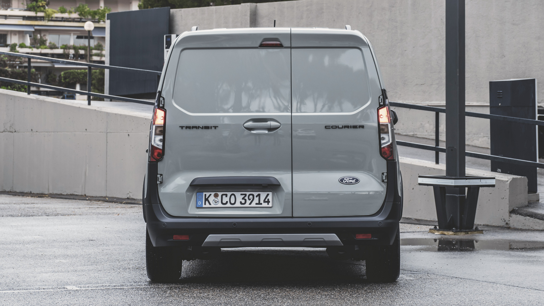 Esta nueva generación del Transit Courier es más grande que la anterior, hasta el punto de acercarse mucho al Transit Connect Furgón, aunque sigue habiendo una diferencia clara en cuanto a concepto y precio. La zona de carga de esta furgoneta permite transportar dos palets europeos y hasta 845 kg de peso. También se pueden llevar objetos de hasta 2,6 metros de longitud gracias a que el mamparo dispone de una apertura en el lado derecho que comunica con el espacio del pasajero.