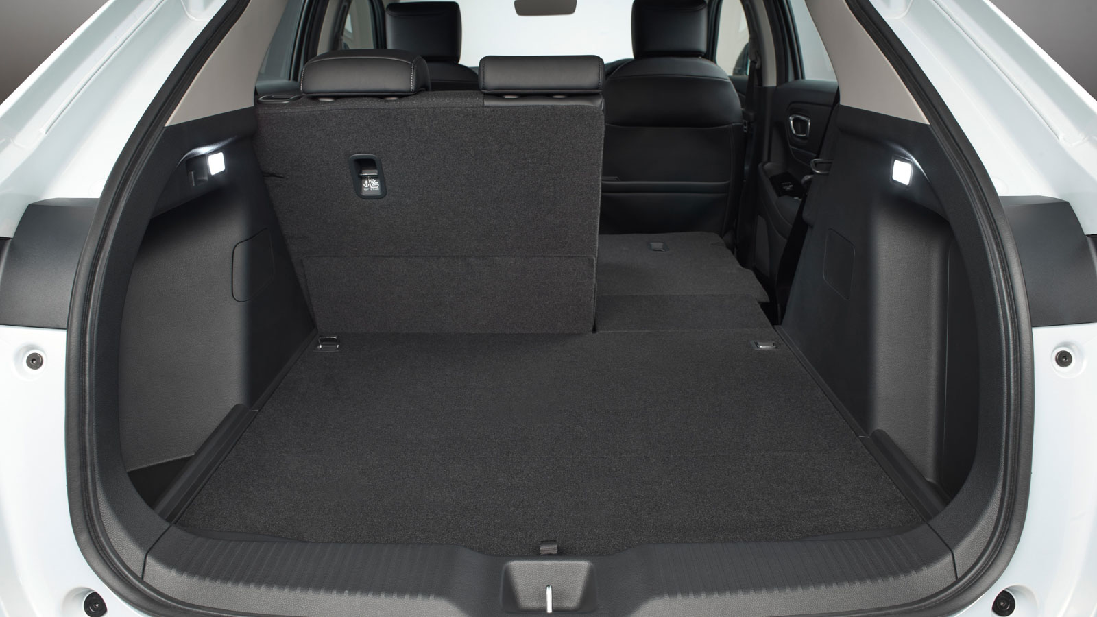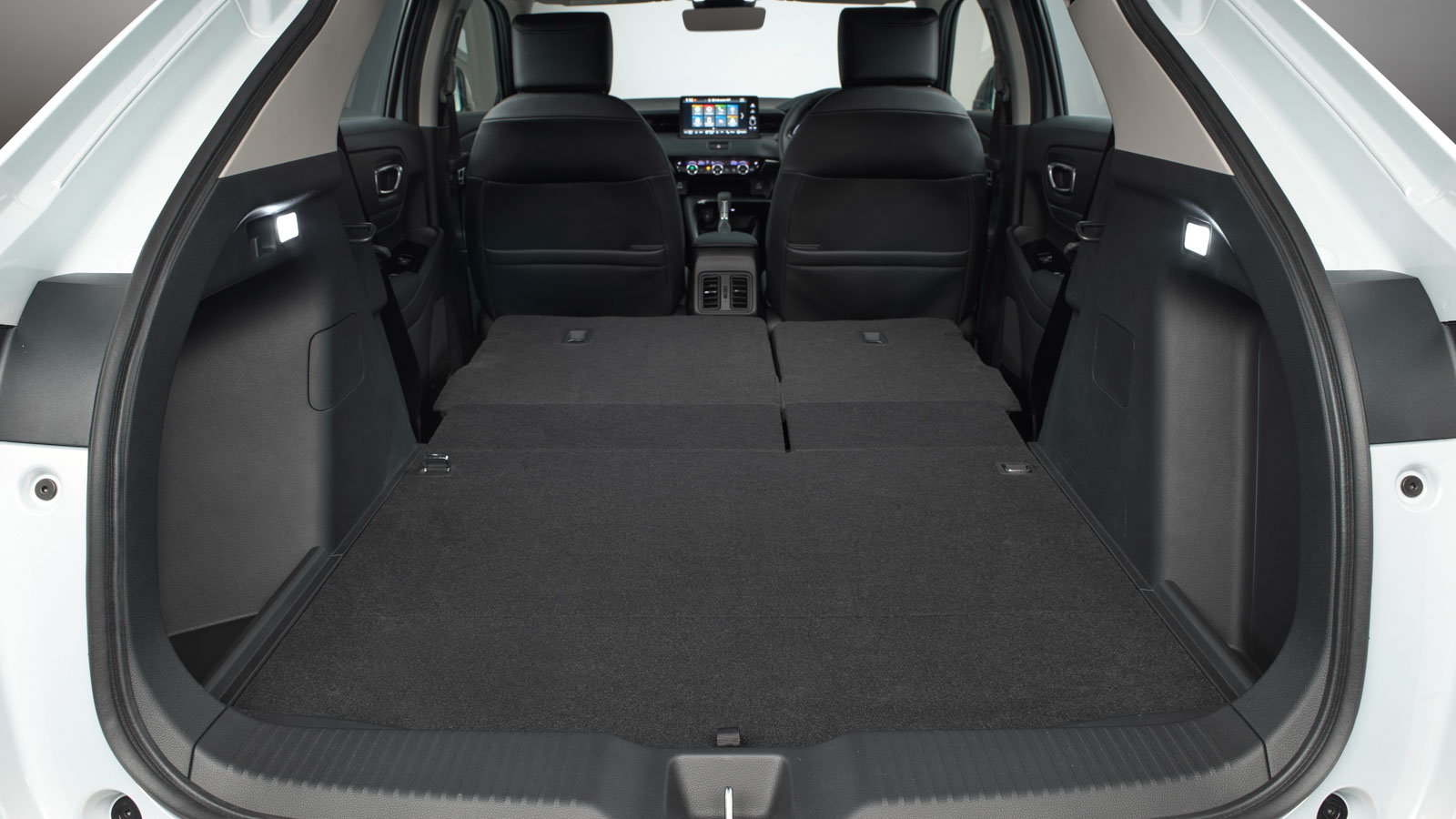 Con una capacidad de carga de 335 litros (320 con el acabado Advance Style, debido a que utiliza un hueco lateral para el subwoofer), el Honda HR-V tiene un maletero algo escaso en comparación a sus rivales directos. Por ejemplo, el Toyota C-HR dispone de 377 litros y el KIA Niro de 410. En la segunda fila los asientos son multiconfigurables, o como Honda los denomina, “Magic Seats”. Gracias a que no tienen debajo el depósito de gasolina como suele ser habitual (en este caso se ubica bajo los asientos delanteros), se pueden plegar parcialmente las banquetas o abatirse completamente en proporción 60:40. De esta manera, quedaría una superficie de carga completamente plana con una longitud de 1,9 metros y un vano con un volumen de hasta 1.305 litros. La boca de carga queda enrasada con el suelo del maletero.