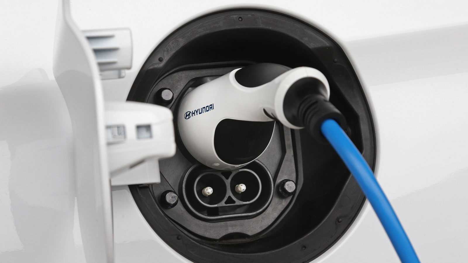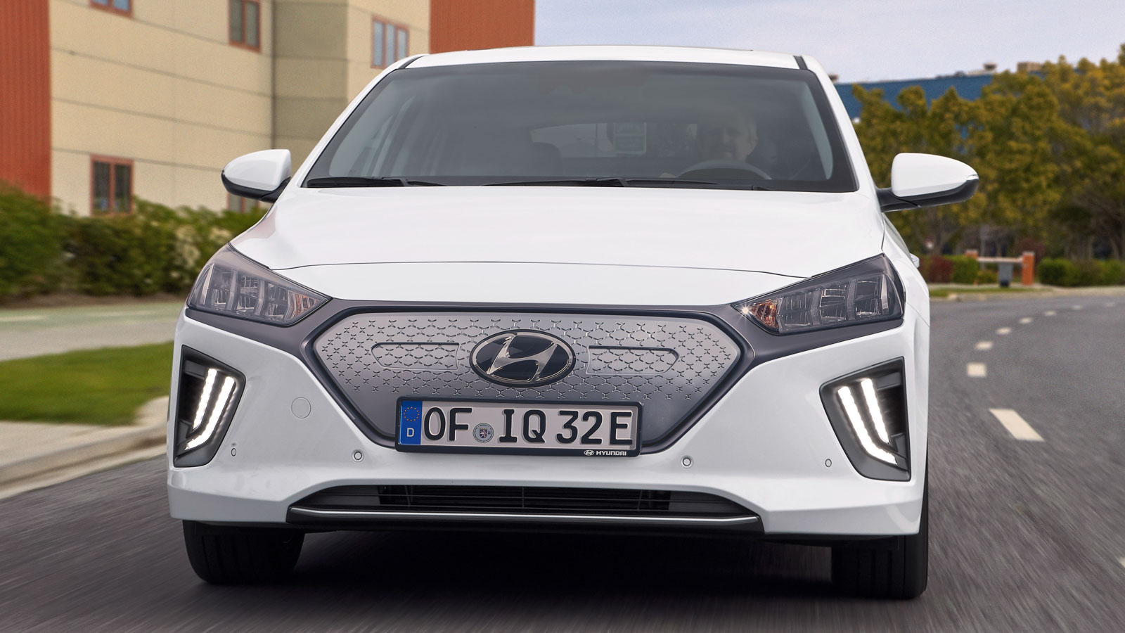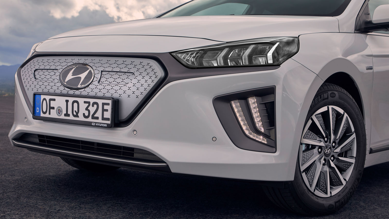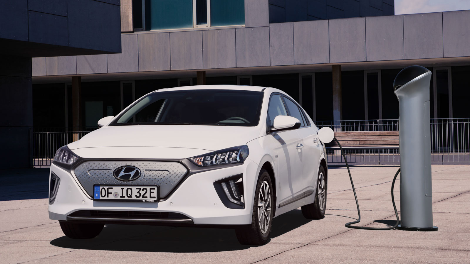 El Hyundai Ioniq Eléctrico está equipado de serie con un cargador a bordo de 7,2 kW para la carga en una toma de corriente alterna, mientras que con una estación de carga rápida la potencia es de 100 kW. Con esta última, la batería puede alcanzar el 80% de carga en 54 minutos. Dispone de una autonomía máxima de 311 kilómetros, que es de las más bajas del segmento, aunque está por encima de los 270 km de autonomía que ofrece un Nissan Leaf.