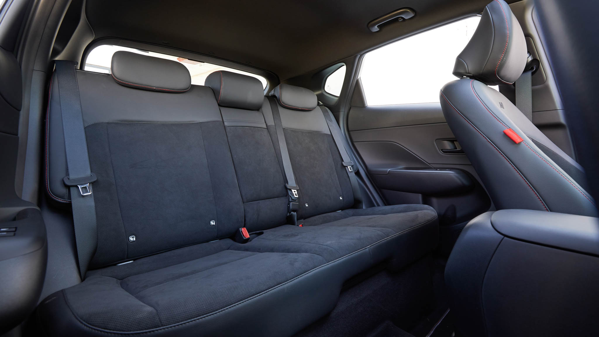 El habitáculo del nuevo Kona es ahora mucho más amplio, principalmente gracias a los 6 cm más de batalla de la nueva plataforma, a unos asientos delanteros 3 cm más finos y a un suelo en la parte trasera que ahora es totalmente plano. Esto hace que haya un espacio destacable para las piernas en la segunda fila, en comparación con la generación anterior hay 7,7 cm más. También se ha ganado 1,1 cm más de espacio para la cabeza y el espacio para los hombros es de 14 cm, uno de los mayores de su segmento. Y para un mayor confort de los pasajeros equipa aireadores y apoyabrazos central con reposavasos en esta parte trasera.
