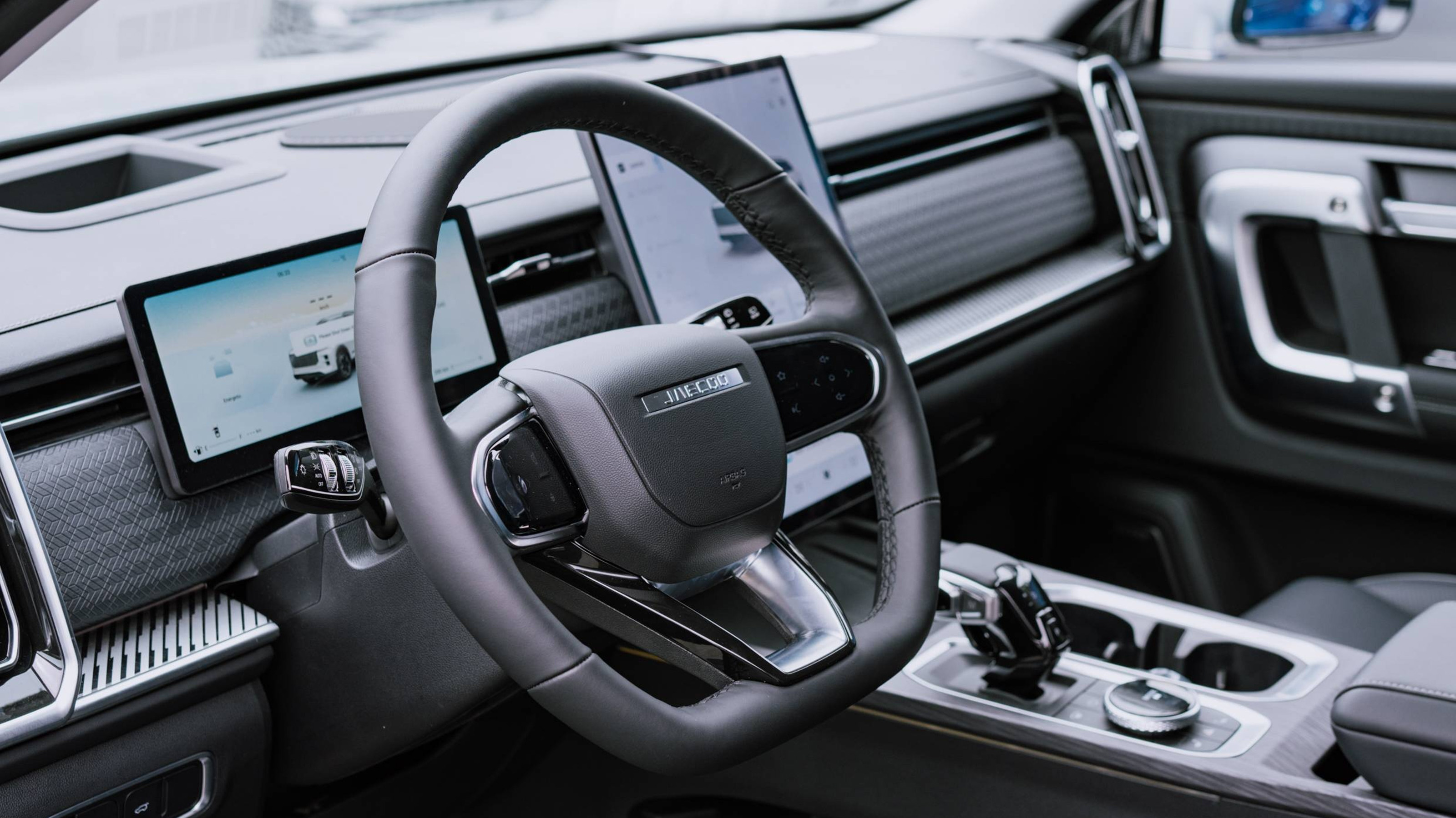 El habitáculo del JAECOO 7 es amplio y está bien equipado. Los materiales son de buena calidad, con un enfoque en detalles que evocan un estilo premium, como los acabados con patrones, las inserciones metálicas en las puertas y la consola central elevada, similares a los del Land Rover Defender.