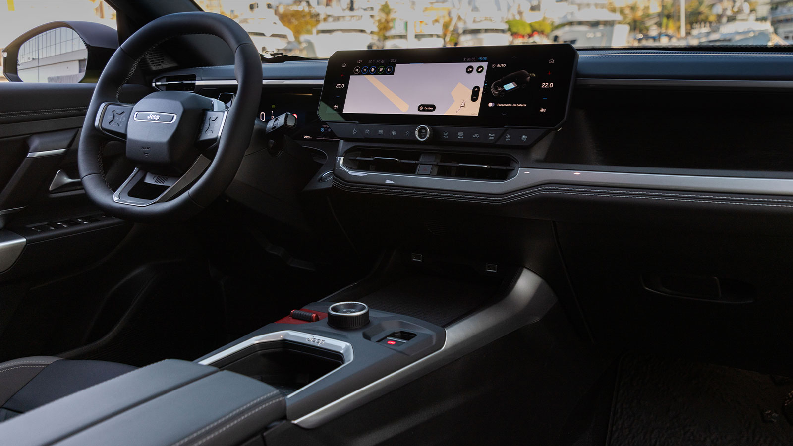 Por dentro, el salto es evidente. El Compass estrena un cuadro digital de 10,25 pulgadas, una pantalla central de 16 pulgadas, Head-Up Display y una nueva arquitectura digital compatible con servicios conectados avanzados. La conducción autónoma de nivel 2 es de serie, con funciones como control de crucero adaptativo predictivo y cambio de carril semiautomático.