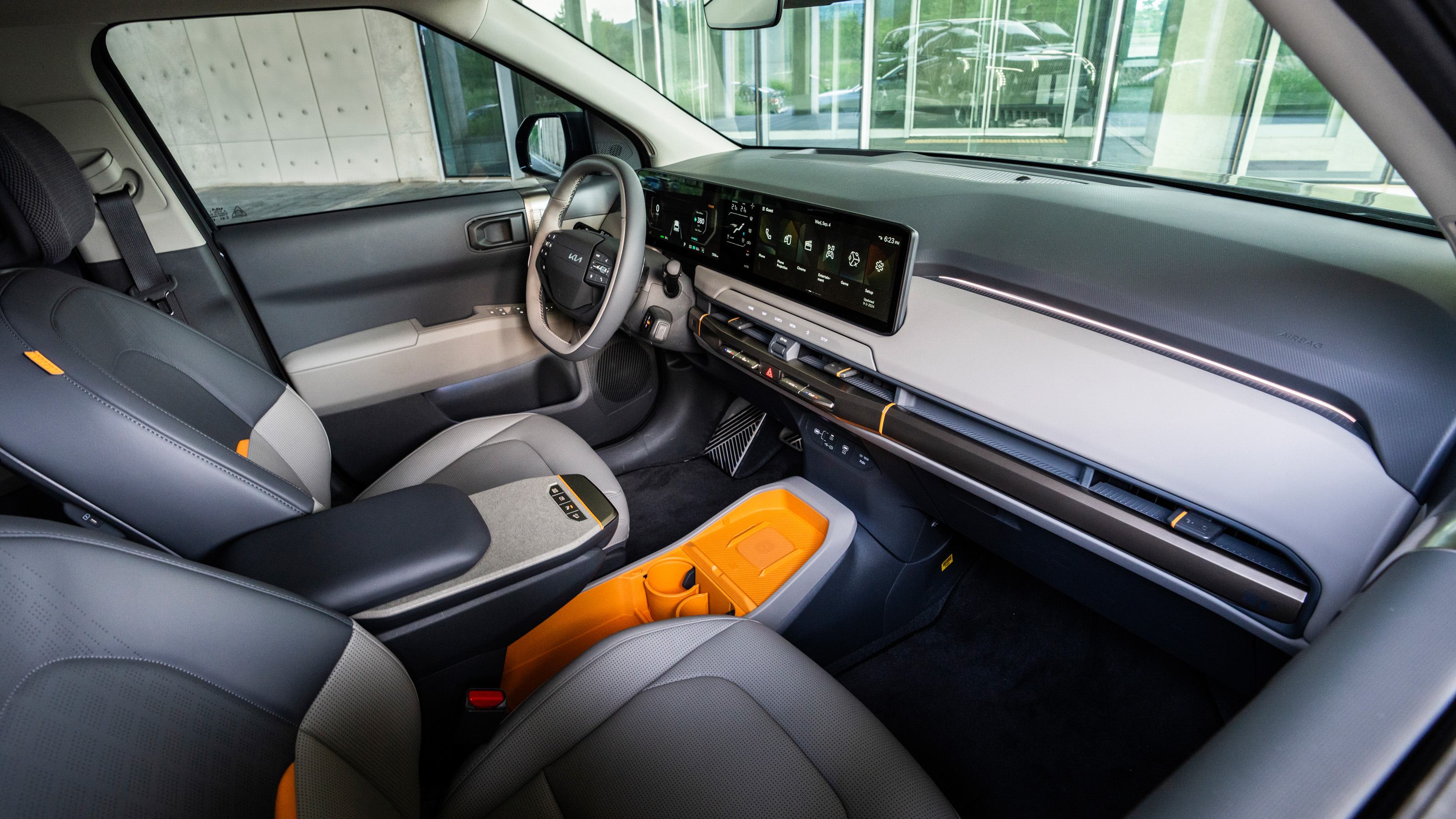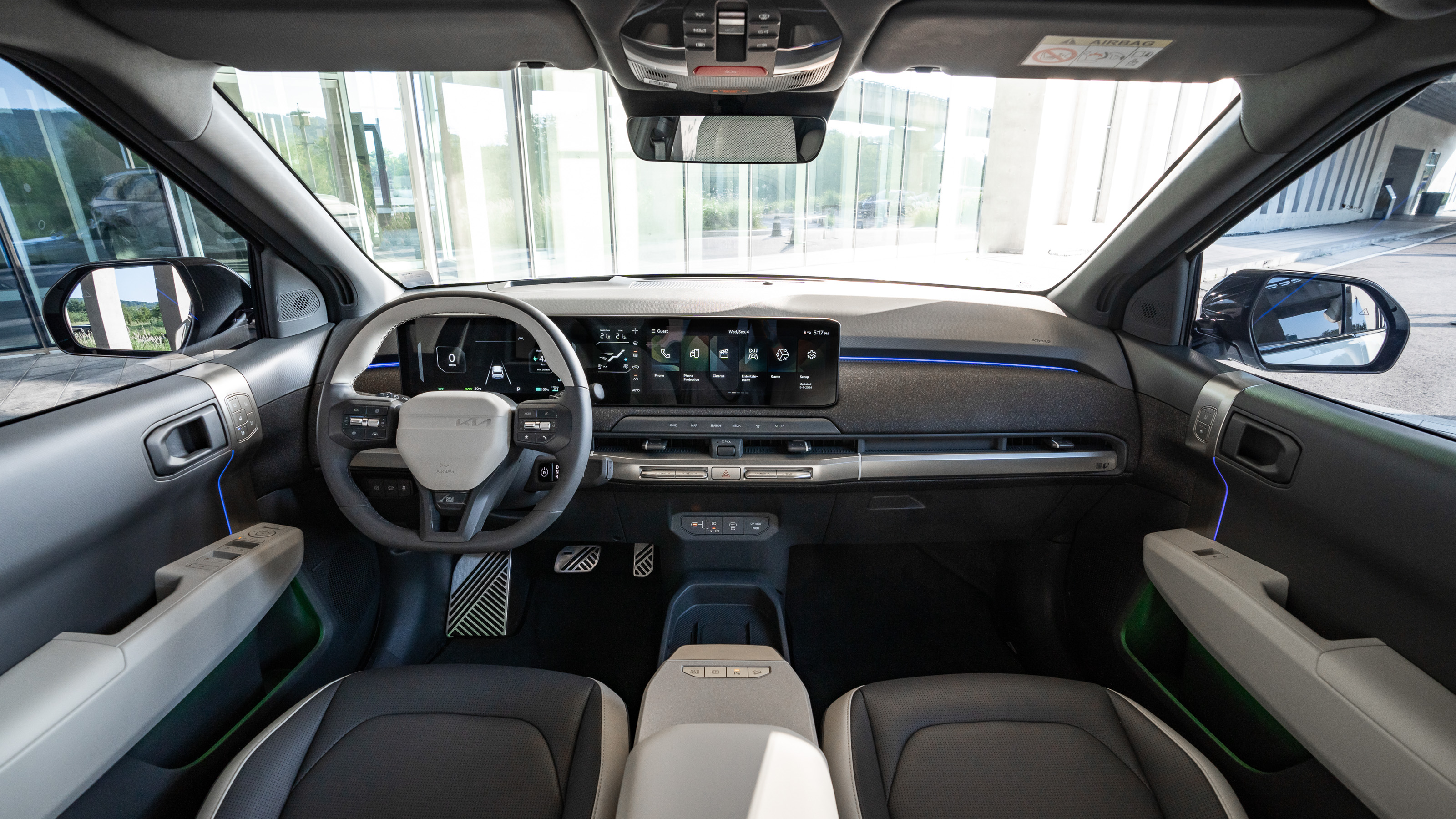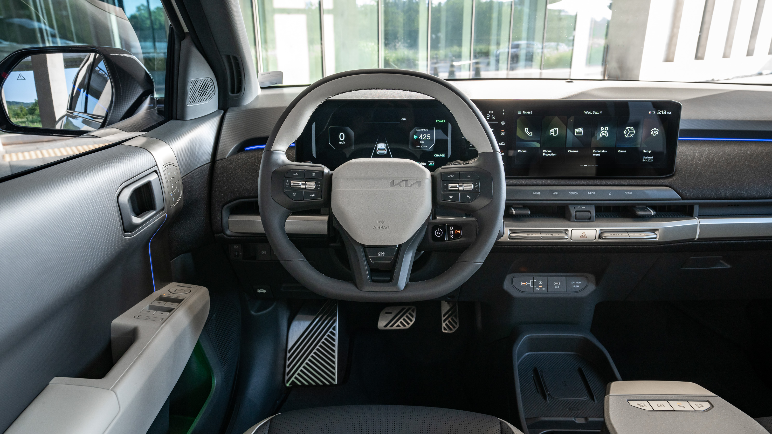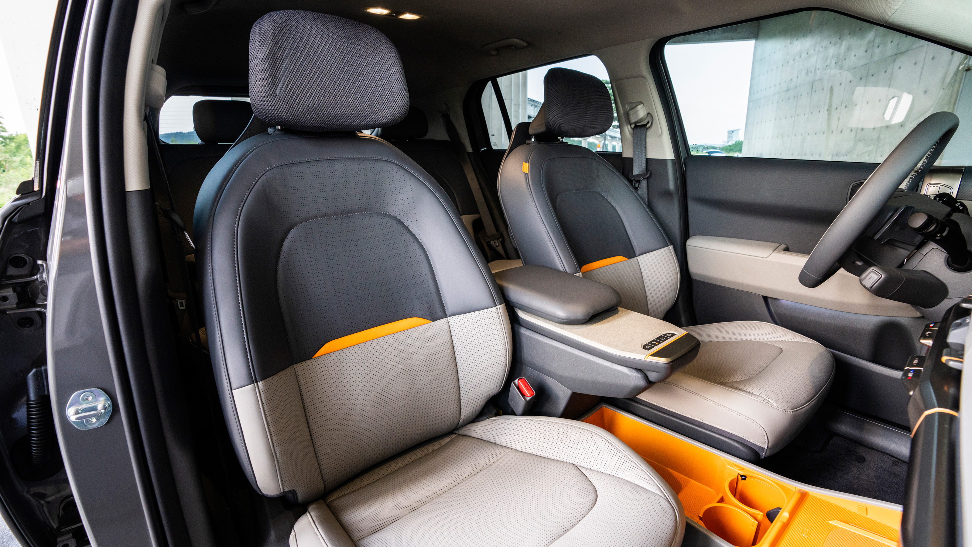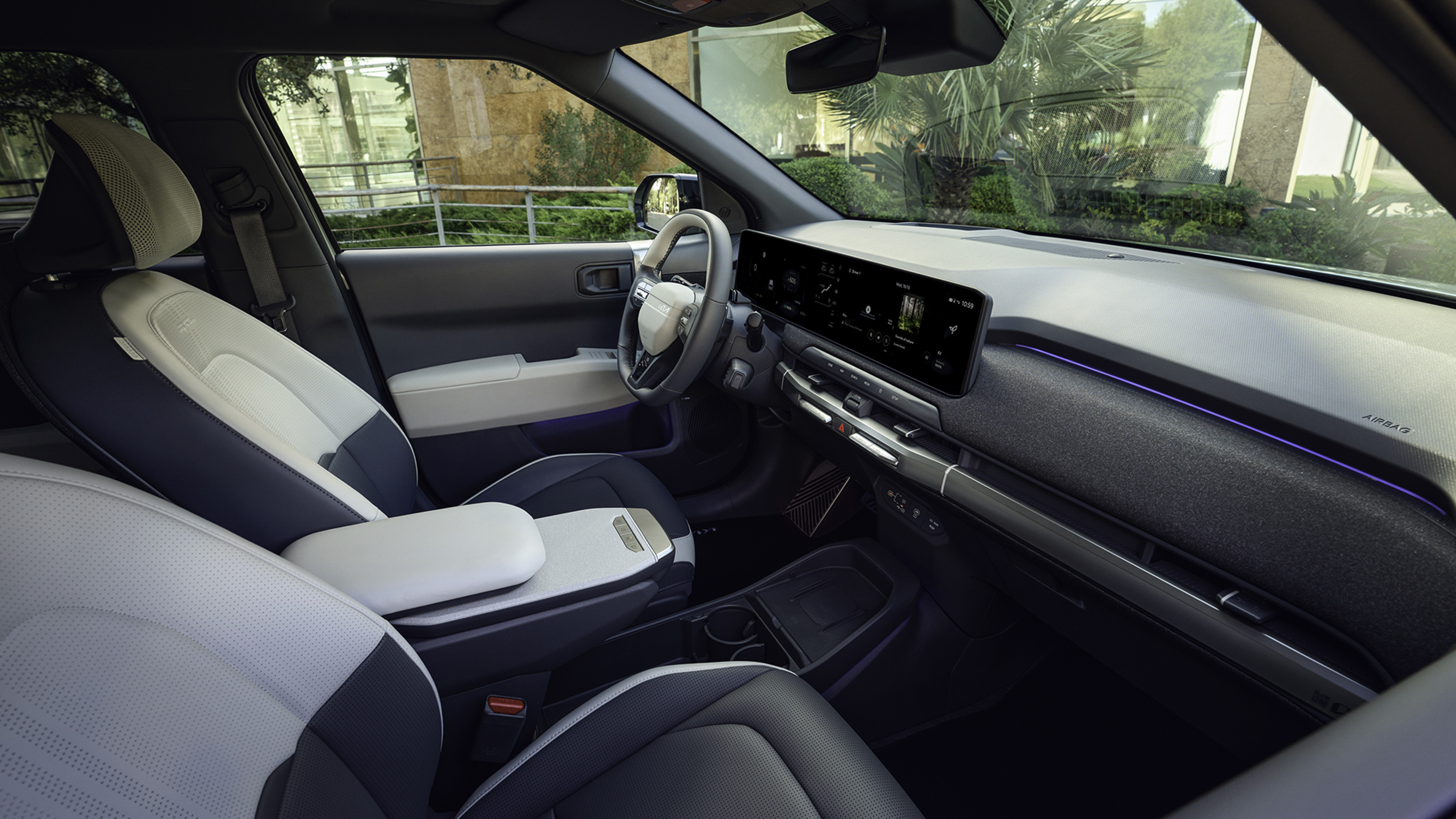 Es de agradecer que el EV3 no sea de esos coches en los que el conductor se siente "enterrado" en plástico y chapa. La superficie acristalada es generosa para lo que se estila hoy en día, los colores claros reducen cualquier sensación claustrofóbica y la distancia al techo es generosa.