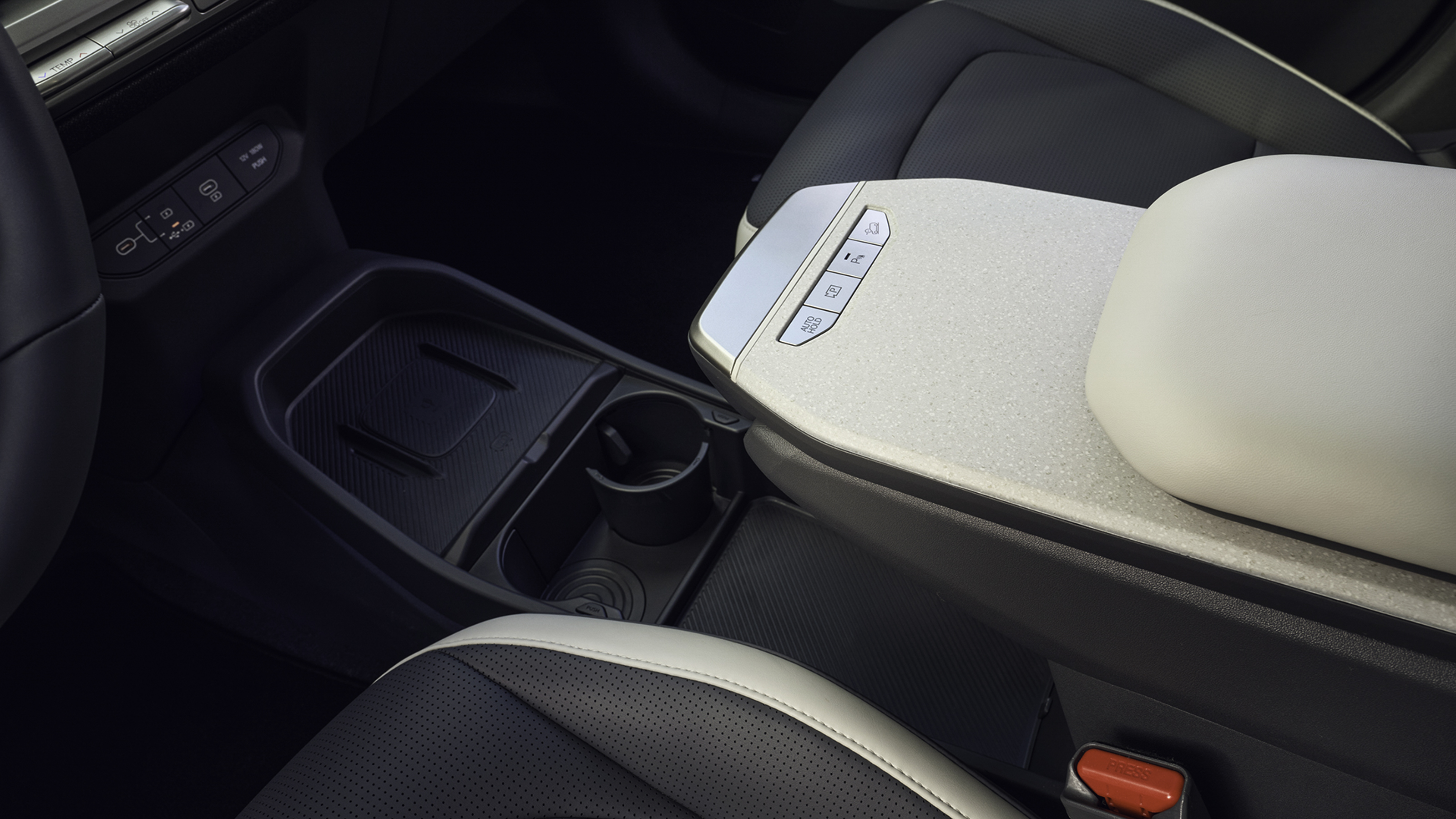 Materiales y ajustes están un poco por encima de lo habitual en el segmento, donde hay marcas que parecen escatimar a costa de ofrecer un eléctrico "barato". Me ha gustado la sensación de solidez que dan los mandos, las superficies. Un detalle al que no le veo ninguna ventaja práctica es el reposabrazos central delantero. Tiene una parte no acolchada que se desliza longitudinalmente, pero que no es cómoda para apoyar el brazo, y otra parte almohadillada que es una tapa fija que sube y baja, pero que no se puede adelantar para tener más apoyo, de manera que ninguno de los dos elementos hace bien su función. Para colmo, al levantar la tapa móvil, no hay el tradicional hueco para guardar objetos de menor tamaño, así que sirve de poco que sea abatible. El cajón más voluminoso está justo por debajo, a nivel casi del suelo, bastante bajo y con la superficie de carga, sin tapa y un poco desangelada, porque no se puede dejar nada de cierto valor sin que quede a la vista de los malos.