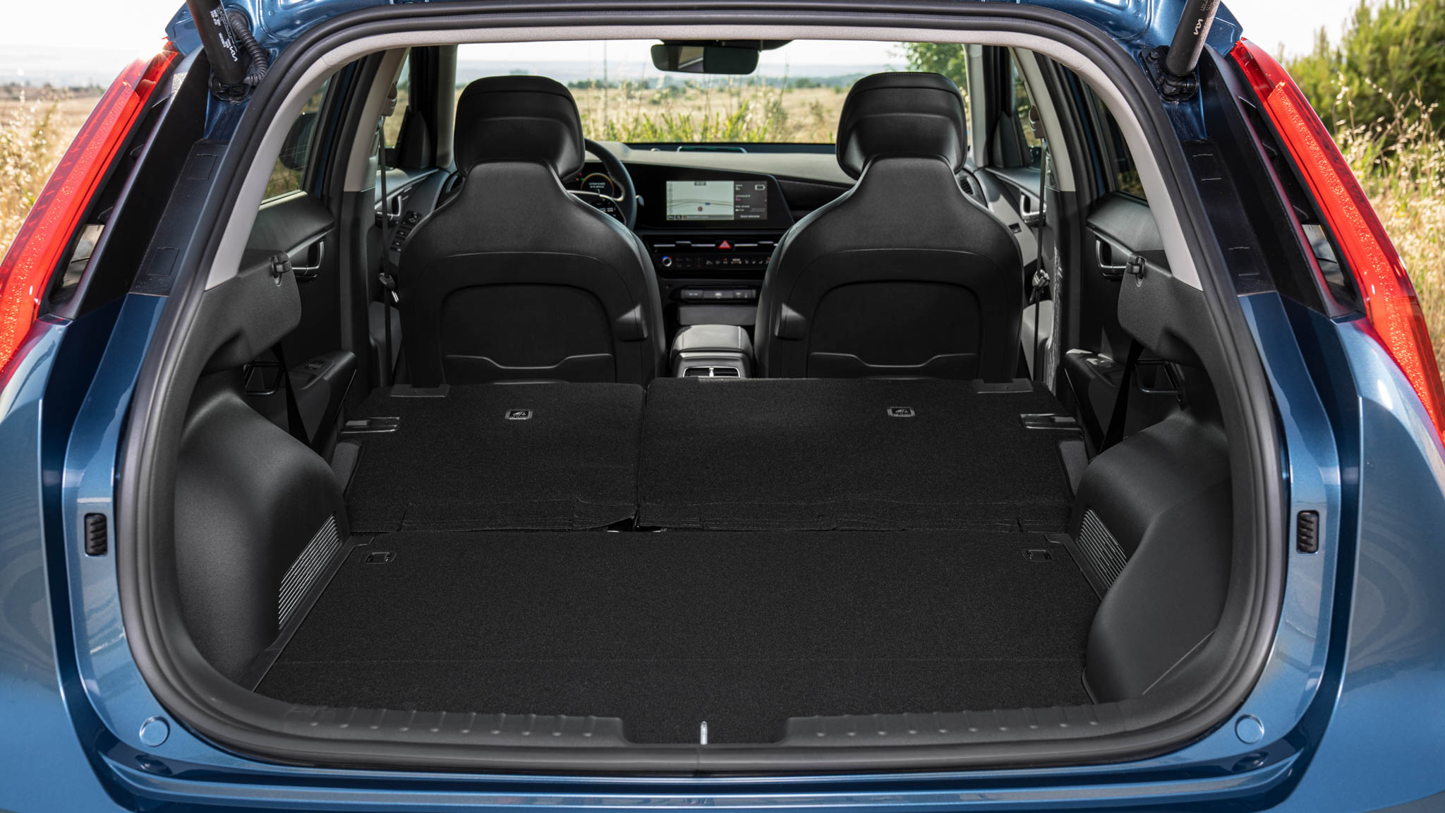 La variante híbrida enchufable sacrifica algo de espacio por la batería: el maletero se queda en 348 litros, es decir, 103 litros menos que el HEV, pero sigue siendo una cifra razonable para un PHEV de este tamaño y está por encima de algunos rivales directos. Con los asientos traseros abatidos, la capacidad crece hasta 1.342 litros. En conjunto, el Niro PHEV se sitúa a medio camino entre modelos como el Renault Captur E-Tech y el Mitsubishi Eclipse Cross PHEV en cuanto a volumen de carga, manteniendo un interior muy amplio para pasajeros.