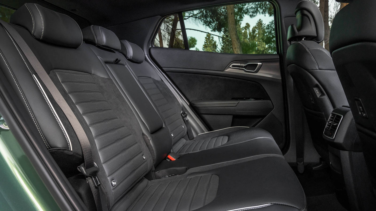 El habitáculo del KIA Sportage es más amplio y luminoso que el de la mayoría de sus rivales. Tiene una anchura suficiente como para alojar a cuatro adultos con comodidad y un espacio para las piernas de los ocupantes traseros muy generosa respecto a la media de su categoría. La altura de la cabina es normal y algo escasa si el modelo está equipado con techo panorámico. Además, los respaldos de las plazas posteriores se pueden regular en inclinación. El cinturón de seguridad del asiento central está en el techo.