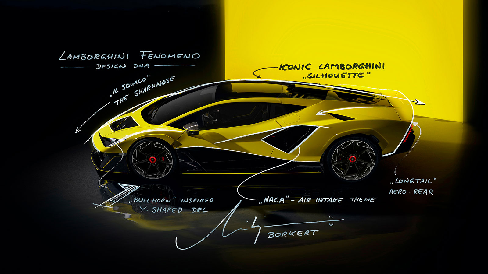A nivel estético, el Fenomeno apuesta por una carrocería “longtail” que estira su silueta hasta los 5,01 metros de longitud. El frontal introduce nuevas luces diurnas en forma de cuernos, mientras que la zaga estrena una firma lumínica vertical inédita en Lamborghini. El sistema S-Duct, inspirado en la competición, mejora la carga aerodinámica y canaliza el aire hacia el alerón trasero para garantizar estabilidad a altas velocidades.