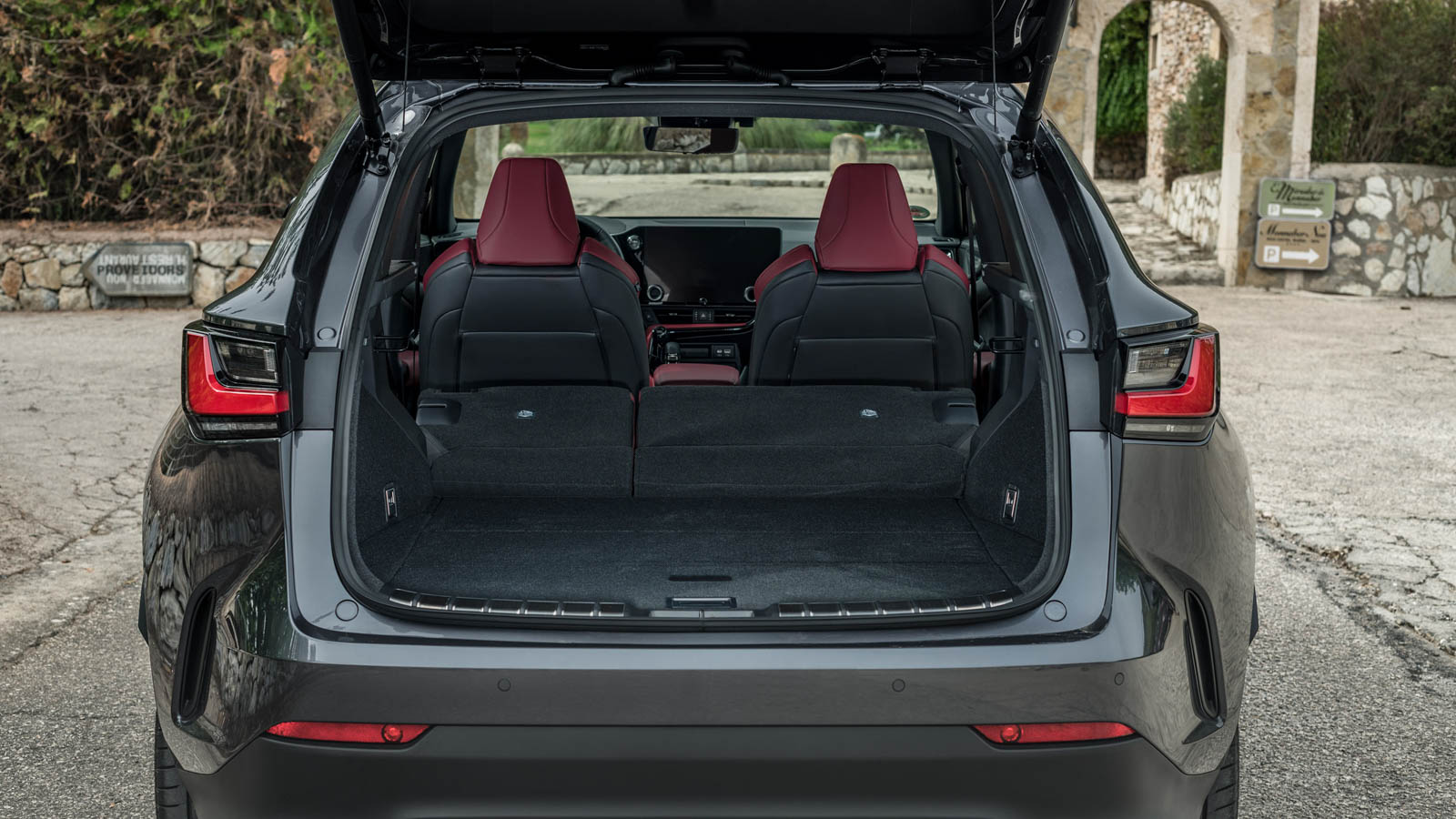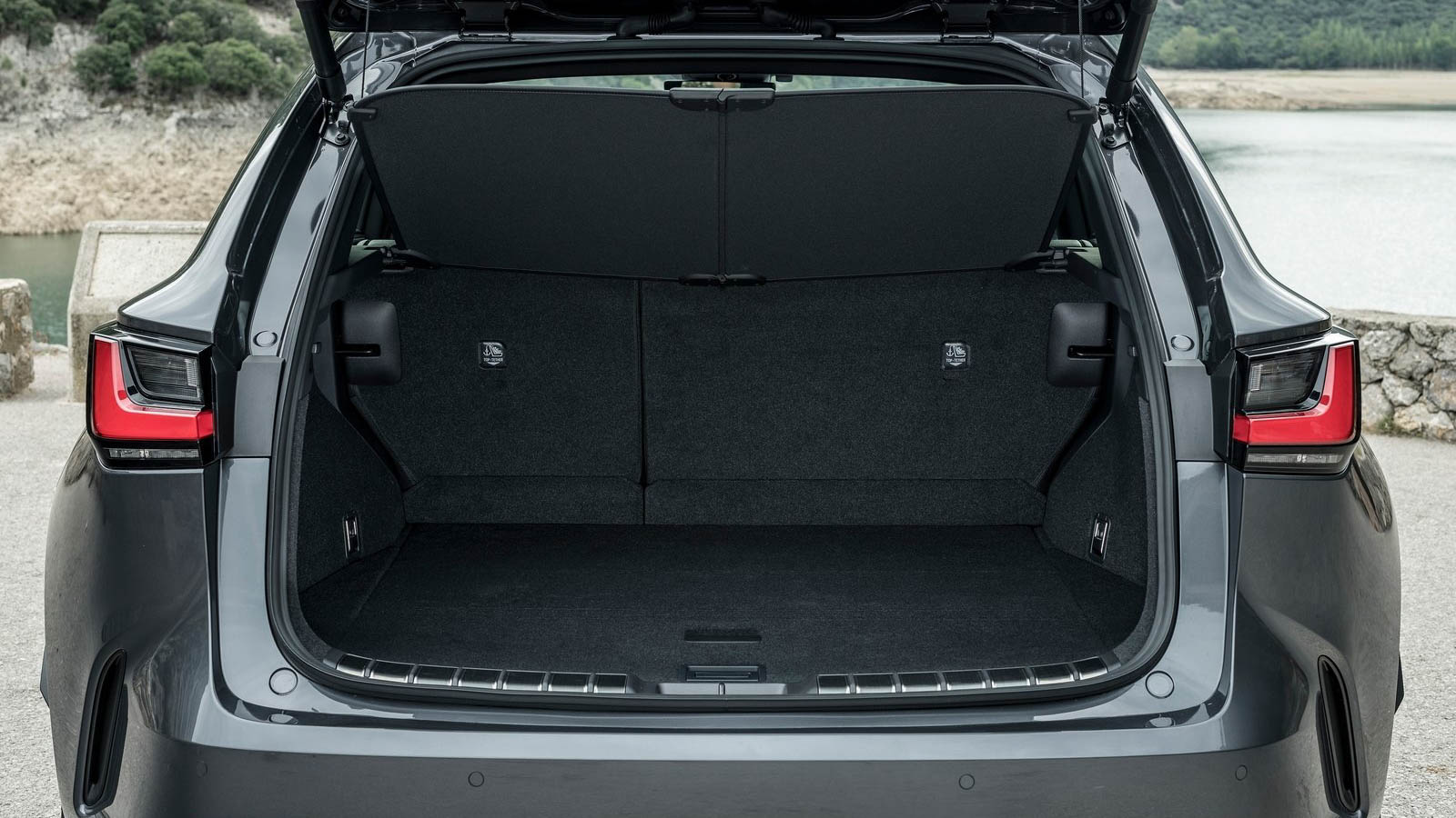 El maletero del Lexus NX aprovecha bien la longitud total del vehículo y ofrece una capacidad de 545 litros en todas las versiones, sin que el sistema híbrido ni la ubicación de las baterías afecten al espacio disponible. Abatiendo los respaldos de los asientos traseros, la capacidad máxima alcanza los 1.436 litros.
