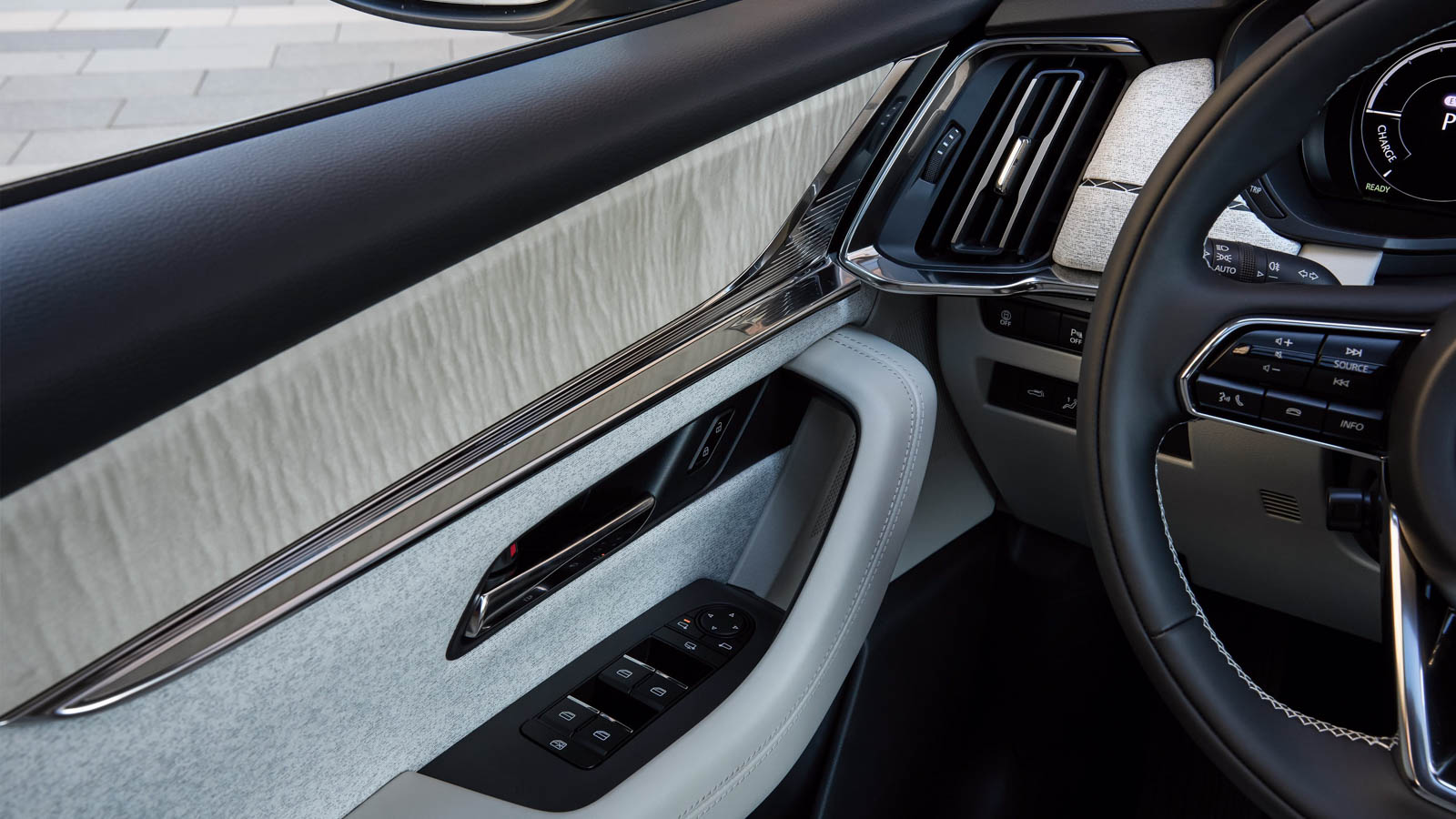 Nos fijamos en el interior del Mazda CX-60 y descubrimos que la calidad de los materiales utilizados para recubrir el habitáculo es altísima, incluso en las zonas menos visibles.