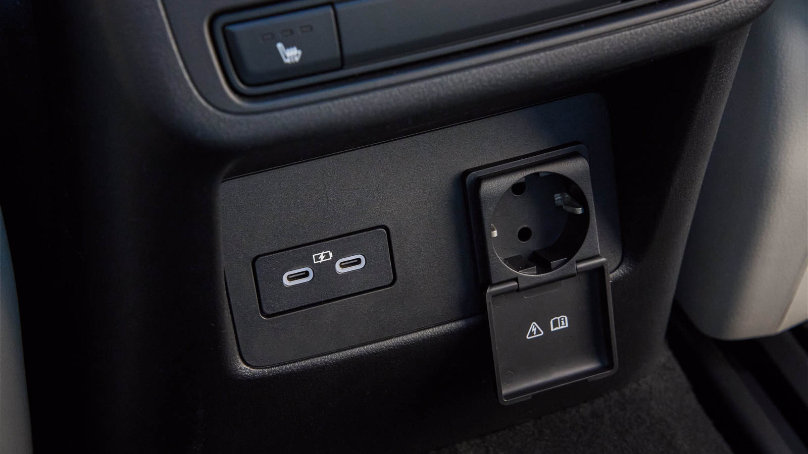 Abriendo el portón, eléctrico de serie, se pueden abatir los respaldos de los asientos con unas palancas situadas en los laterales del maletero y, también, utilizando unos mandos que se encuentran en la parte superior de los asientos. Además, cuenta con una red de separación de carga que se puede colocar tanto detrás de los asientos traseros como detrás de los asientos delanteros para evitar que los objetos del maletero se desplacen hacia la zona de los pasajeros en caso de una frenada brusca.