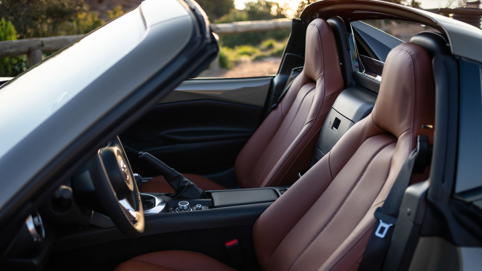 Con el acabado Zenith, el Mazda MX-5 RF ya monta de serie asientos calefactados y llantas de 17”. El Sport añade suspensión deportiva Bilstein, asientos realizados por el especialista Recaro, también calefactados, y techo en color “Piano Black”.