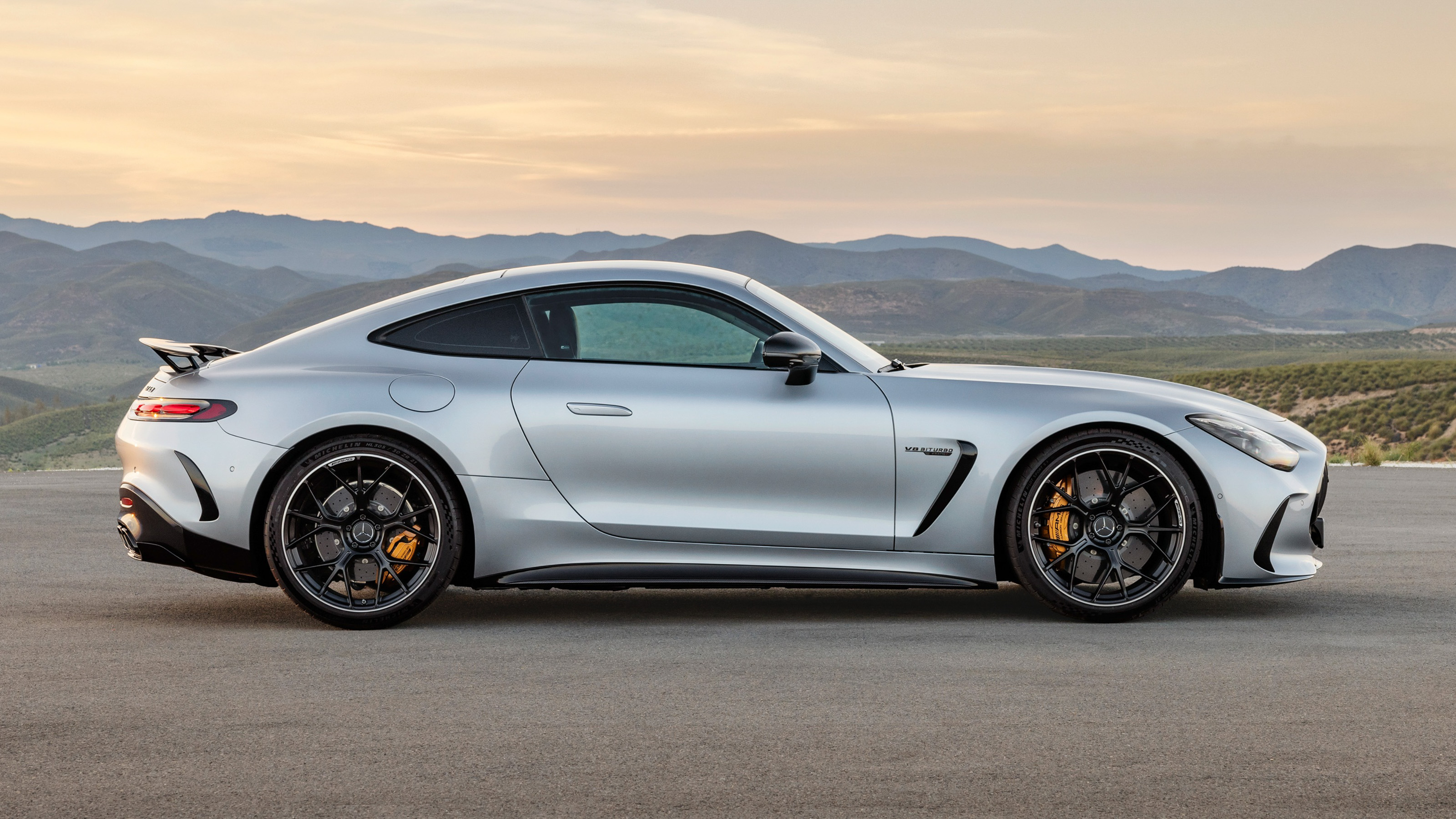 El Mercedes-AMG GT Coupé es el modelo más deportivo de la marca. Esta es la segunda generación y ha crecido mucho respecto a la anterior, hasta los 4,73 metros de longitud (casi 20 centímetros), y ahora comparte plataforma con el Mercedes-AMG SL. Otra novedad es que, por primera vez, se pueden pedir dos asientos traseros individuales, aunque solo son utilizables por niños.