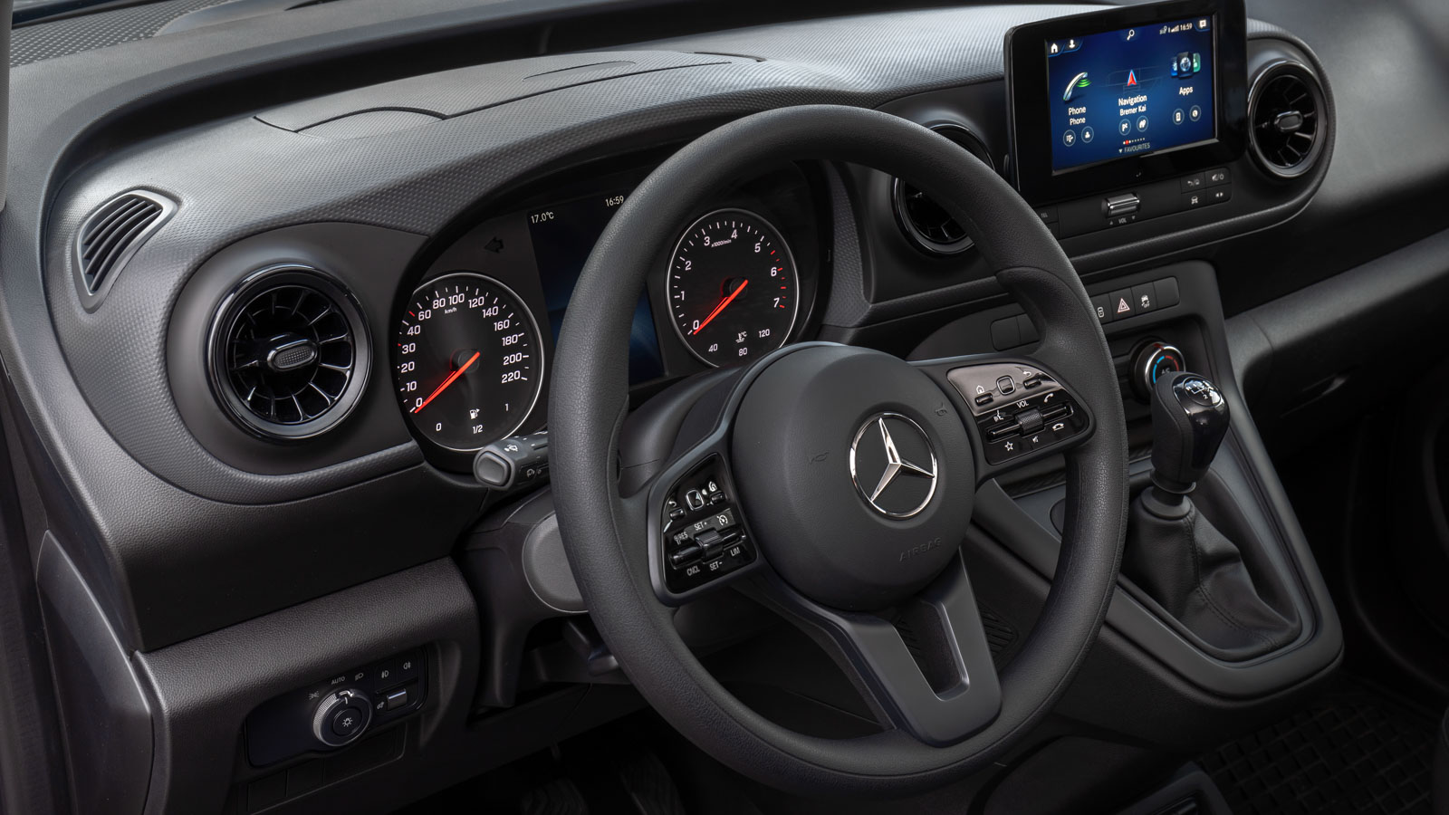 Al margen de alguna diferencia en el diseño del volante (de plástico, no de cuero o siquiera polipiel) o el salpicadero, es básicamente el mismo producto que una Kangoo o una Townstar. La calidad de rodadura es baja. Tiene una insonorización convencional para esta clase de vehículo. No se ha revisado la aerodinámica de los retrovisores lo suficiente y al habitáculo llega mucho ruido procedente del motor y de los pasos de rueda delanteros. La mampara tampoco aísla mucho de los ruidos que puedan producirse en el compartimento de carga. Con todo, Mercedes dice que este es uno de sus productos más estratégicos. Admite cierto grado de personalización y mejora.