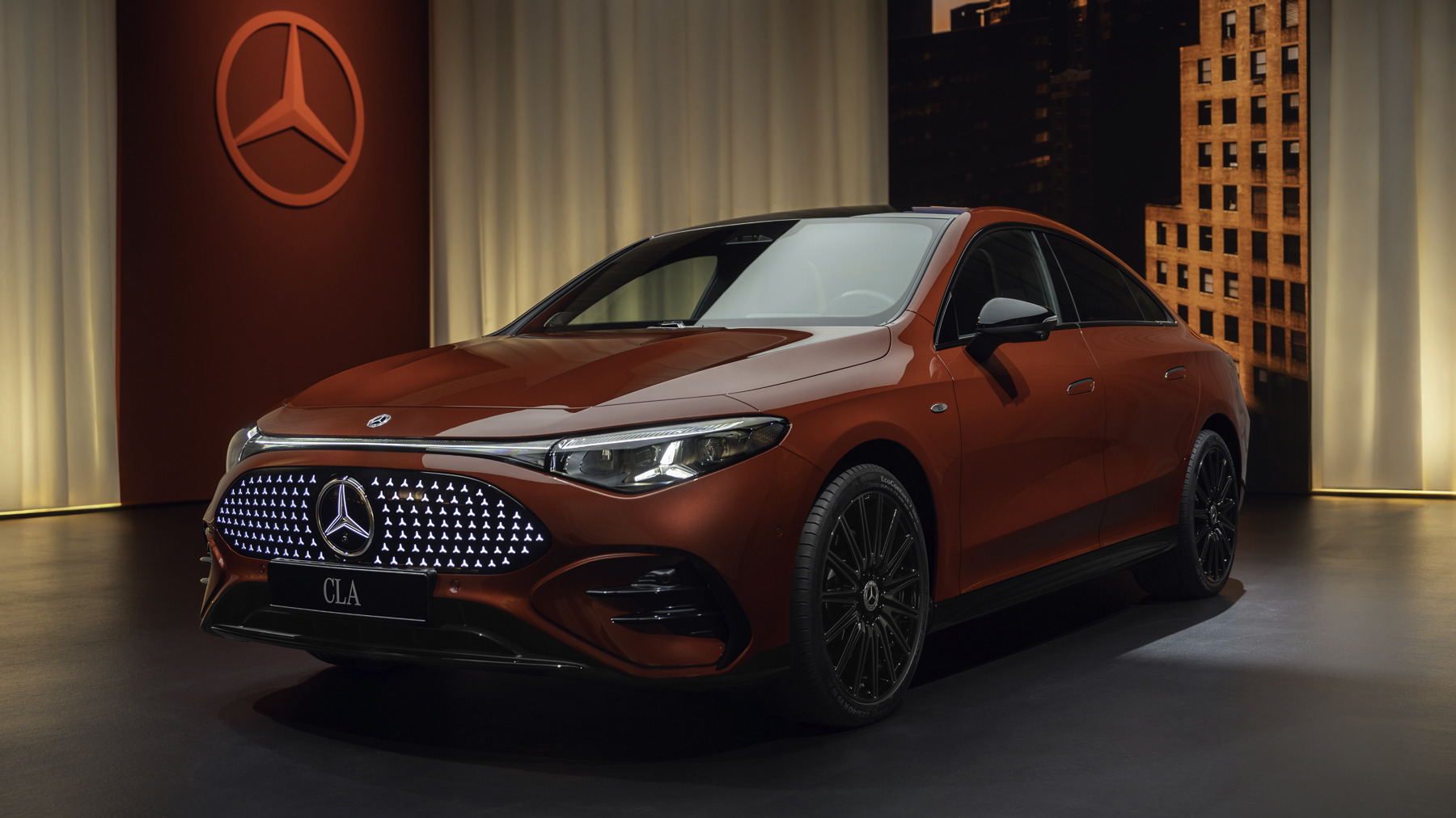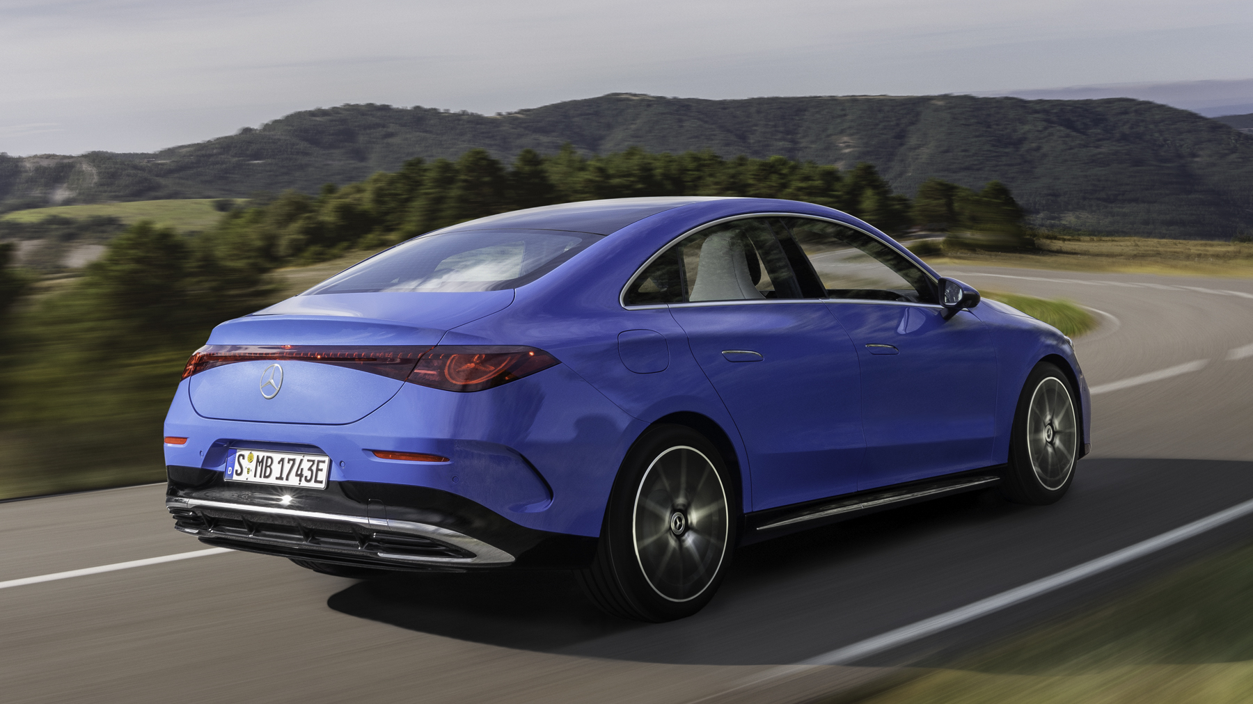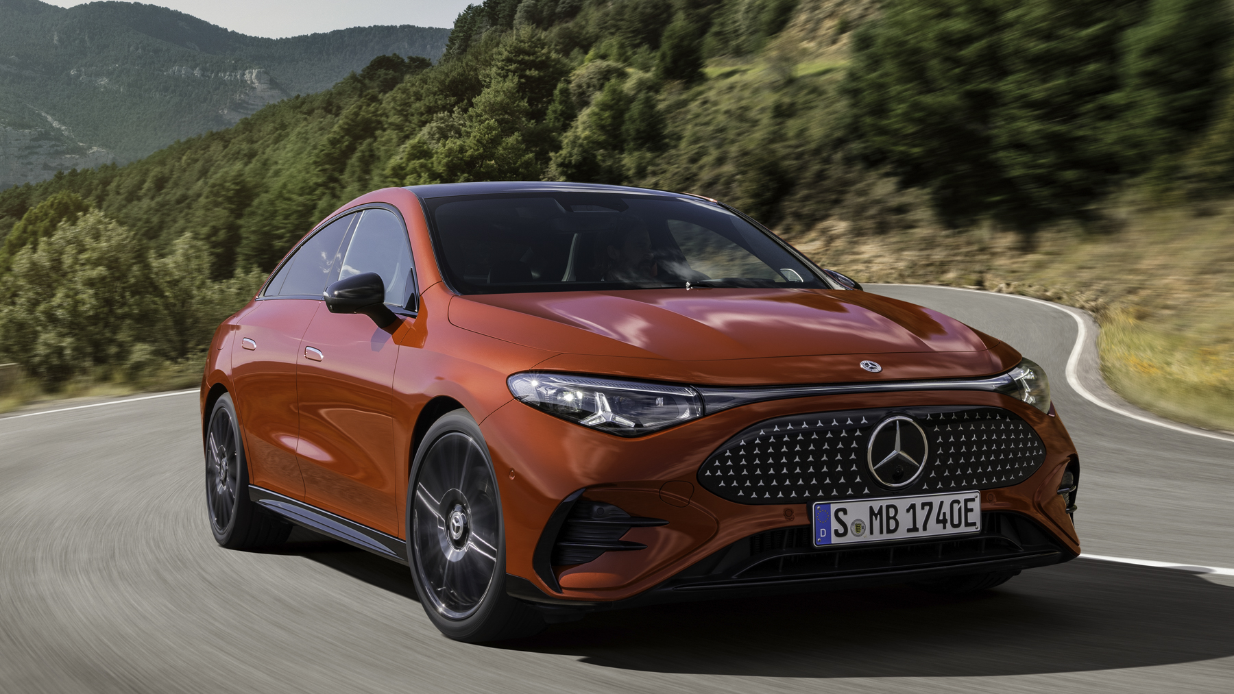 La parrilla delantera tiene la estrella iluminada y una nueva interpretación de la parrilla clásica, junto a los faros LED MULTIBEAM en forma de estrella. El diseño exterior también tiene una línea de cintura baja, pasos de rueda musculosos y un capó largo, lo que acentúa su perfil deportivo.