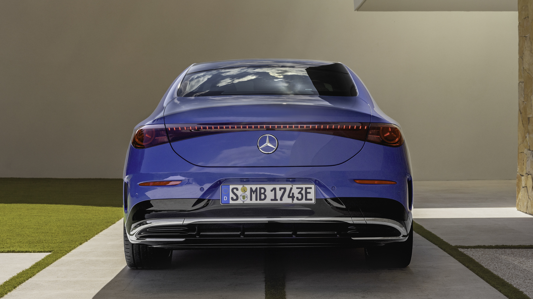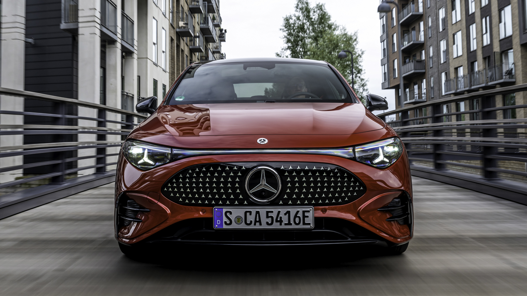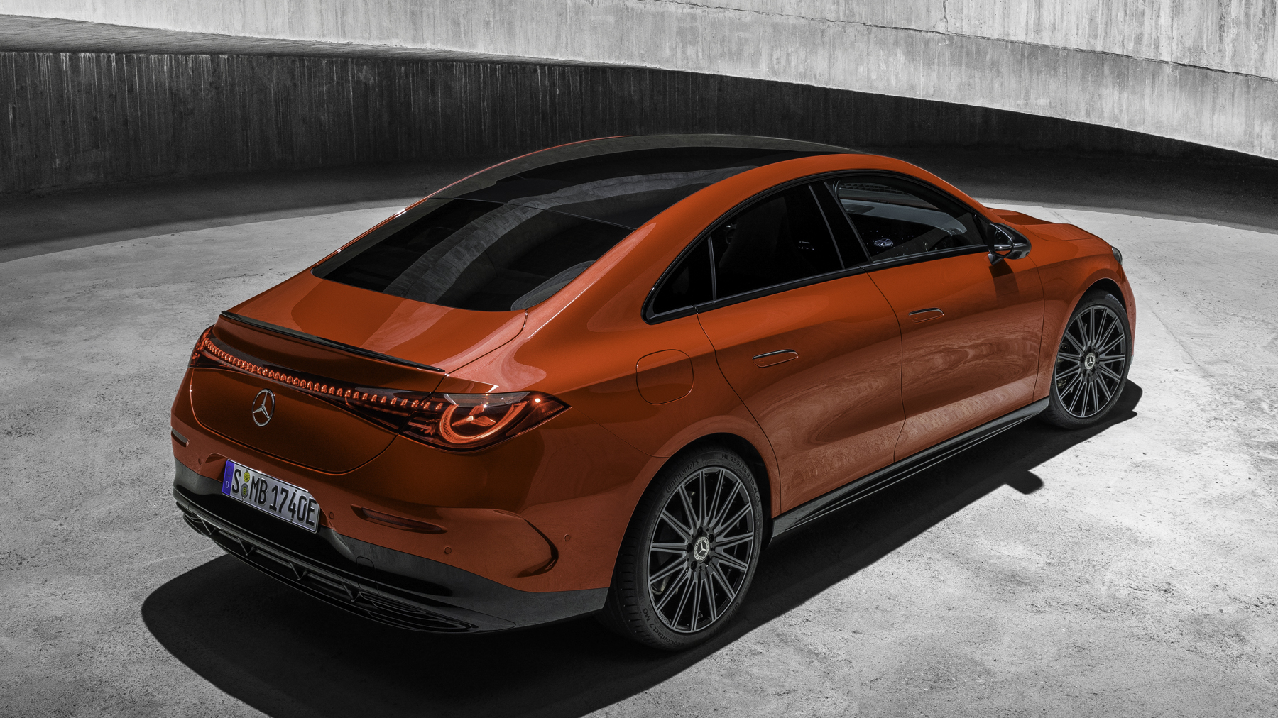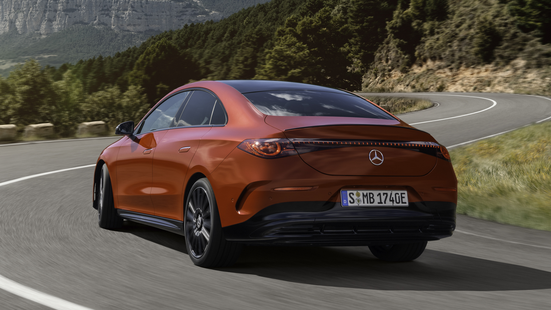 La parrilla delantera tiene la estrella iluminada y una nueva interpretación de la parrilla clásica, junto a los faros LED MULTIBEAM en forma de estrella. El diseño exterior también tiene una línea de cintura baja, pasos de rueda musculosos y un capó largo, lo que acentúa su perfil deportivo.