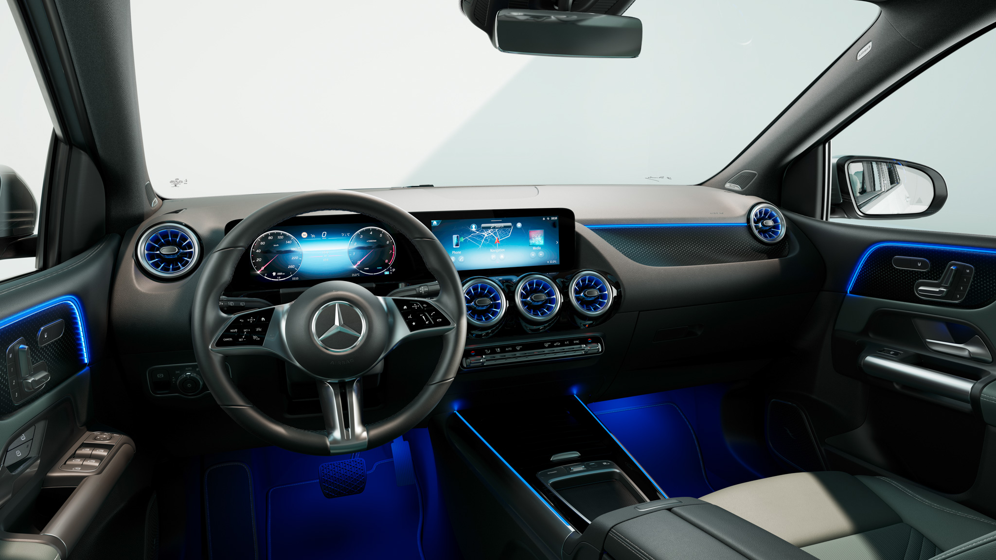 El Mercedes-Benz Clase B de 2023 introduce varias mejoras en su interior, como un nuevo volante, una instrumentación digital con gráficos actualizados y una consola central rediseñada que incorpora mandos renovados para el sistema multimedia. El asistente de voz también ha sido optimizado y ya no requiere la activación mediante el comando «Hey Mercedes». Además, el sistema multimedia incorporará reconocimiento de huella dactilar para identificar al conductor y personalizar automáticamente elementos como la posición del asiento, la temperatura o las emisoras de radio.
