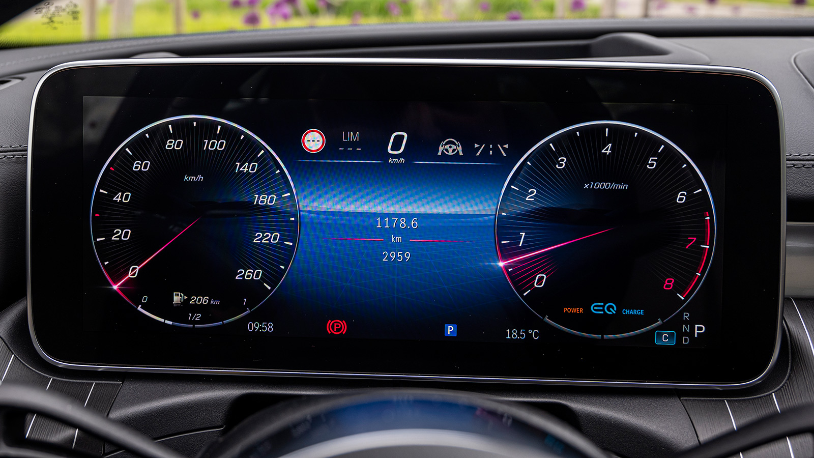 La pantalla de la instrumentación es de 12,3 pulgadas y la central mide 11,9, pero esta última está colocada en vertical ocupando prácticamente todo el centro del salpicadero. En ella se integran en su zona inferior los mandos del climatizador. Estos mandos táctiles son fijos, siempre están ahí y, aunque seguimos prefiriendo los mandos físicos, hay que reconocer que dentro de lo que cabe, Mercedes-Benz ha resuelto bien este tema.