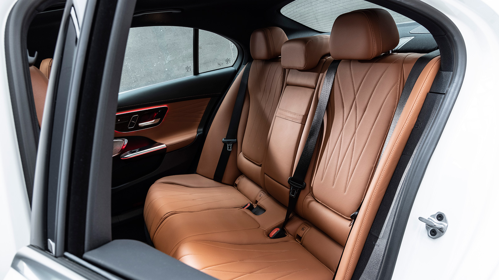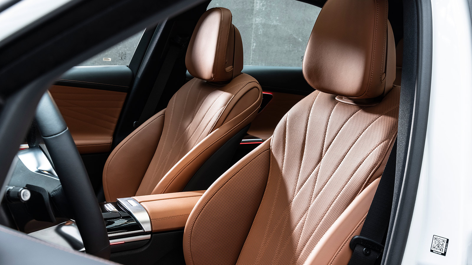 Los asientos delanteros se pueden colocar muy cerca del suelo, como en las berlinas tradicionales de hace no muchos años. Esto llama la atención en un mundo dominado por SUV. En cuanto al confort y la sujeción, son unos asientos son correctos, sin más. Van equipados de serie con calefacción, aunque, curiosamente, no disponen de regulación en altura del reposacabezas (sí en aproximación a la cabeza). En opción se pueden pedir que tengan ventilación y memorias de posición. El material de recubrimiento puede ser cuero artificial (“Artico” que es como lo denomina Mercedes-Benz) o cuero natural y existe una variada gama de colores y combinaciones para adaptarlos a los gustos de cada propietario.