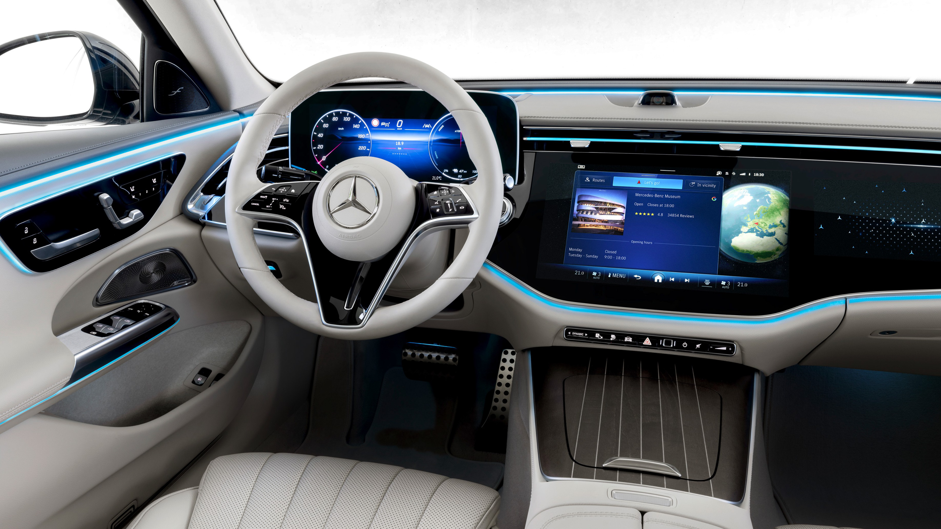 Como novedad, este Clase E puede llevar una tercera pantalla en el salpicadero, frente al pasajero, para que este pueda reproducir contenido multimedia durante el viaje, consultar algunos datos sobre el vehículo, o realizar ajustes en la climatización.