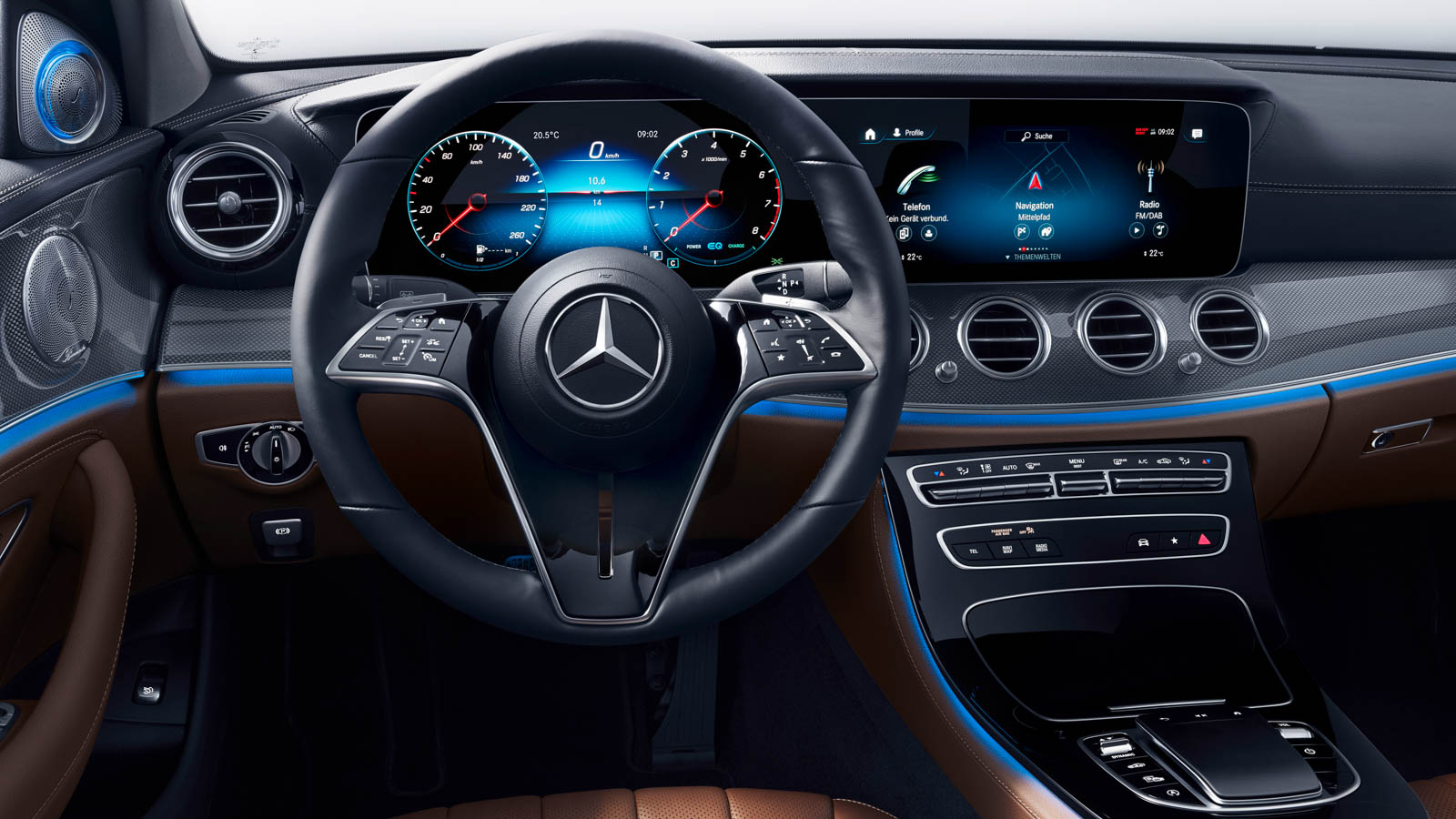 El sistema multimedia del Mercedes-Benz Clase E es uno de los más avanzados y completos del mercado. Sus dos pantallas en formato panorámico y el asistente virtual con inteligencia artificial permiten una gran facilidad de acceso a todas sus funciones. El cuadro de instrumentos también es completamente digital y configurable en varios formatos.