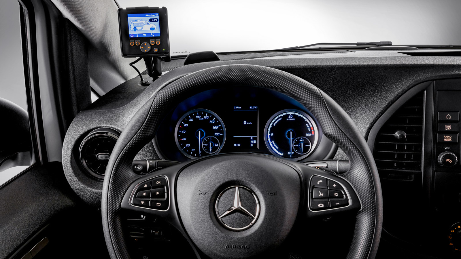 El máximo nivel de sistema multimedia que puede equipar la eVito consta de una pantalla táctil de 7 pulgadas con navegación integrada e indicaciones con vistas en 3D. También incluye la integración de smartphone a través de Apple CarPlay y Android Auto, así como conexión Bluetooth con streaming de audio y función manos libres y cuenta con dos puertos USB.