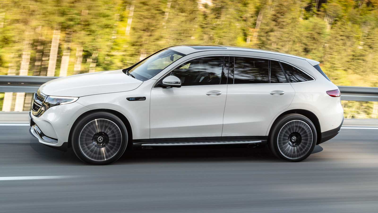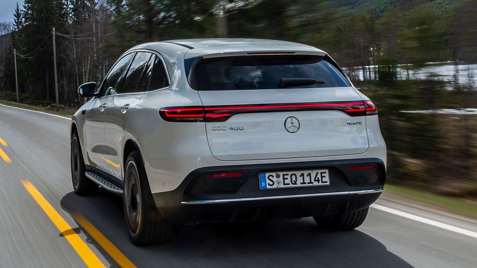 La aceleración de 0 a 100 km/h del Mercedes-Benz EQC es de 5,1 segundos, y alcanza una velocidad máxima de180 km/h, unas buenas prestaciones en comparación a otras alternativas como el BMW iX3 de 286 CV (6,8 s y 180 km/h) o el Audi e-tron 55 quattro de 408 CV (5,7 s y 200 km/h), aunque es ligeramente menos prestacional que el Jaguar I-PACE (4,8 s y 200 km/h).